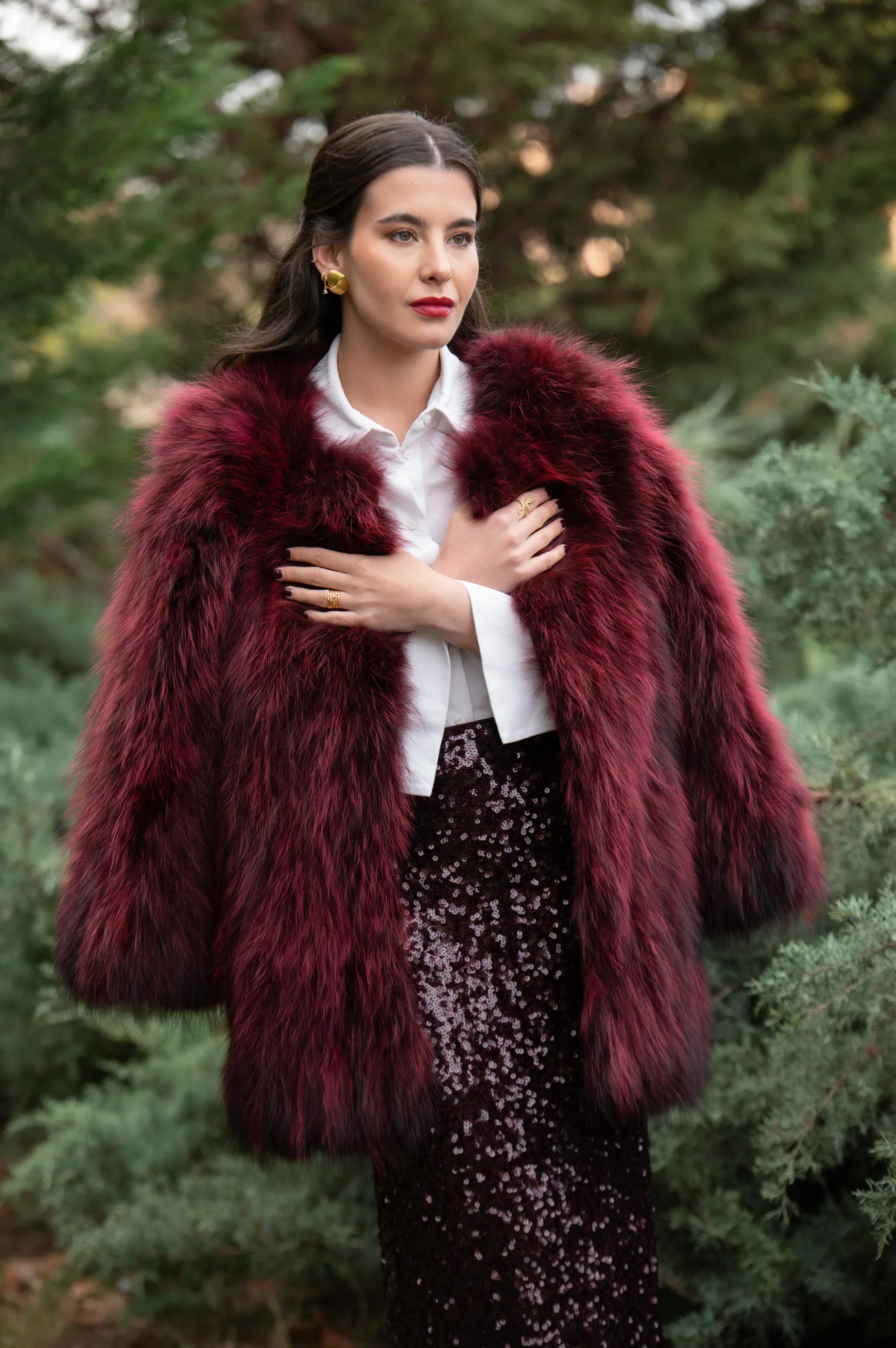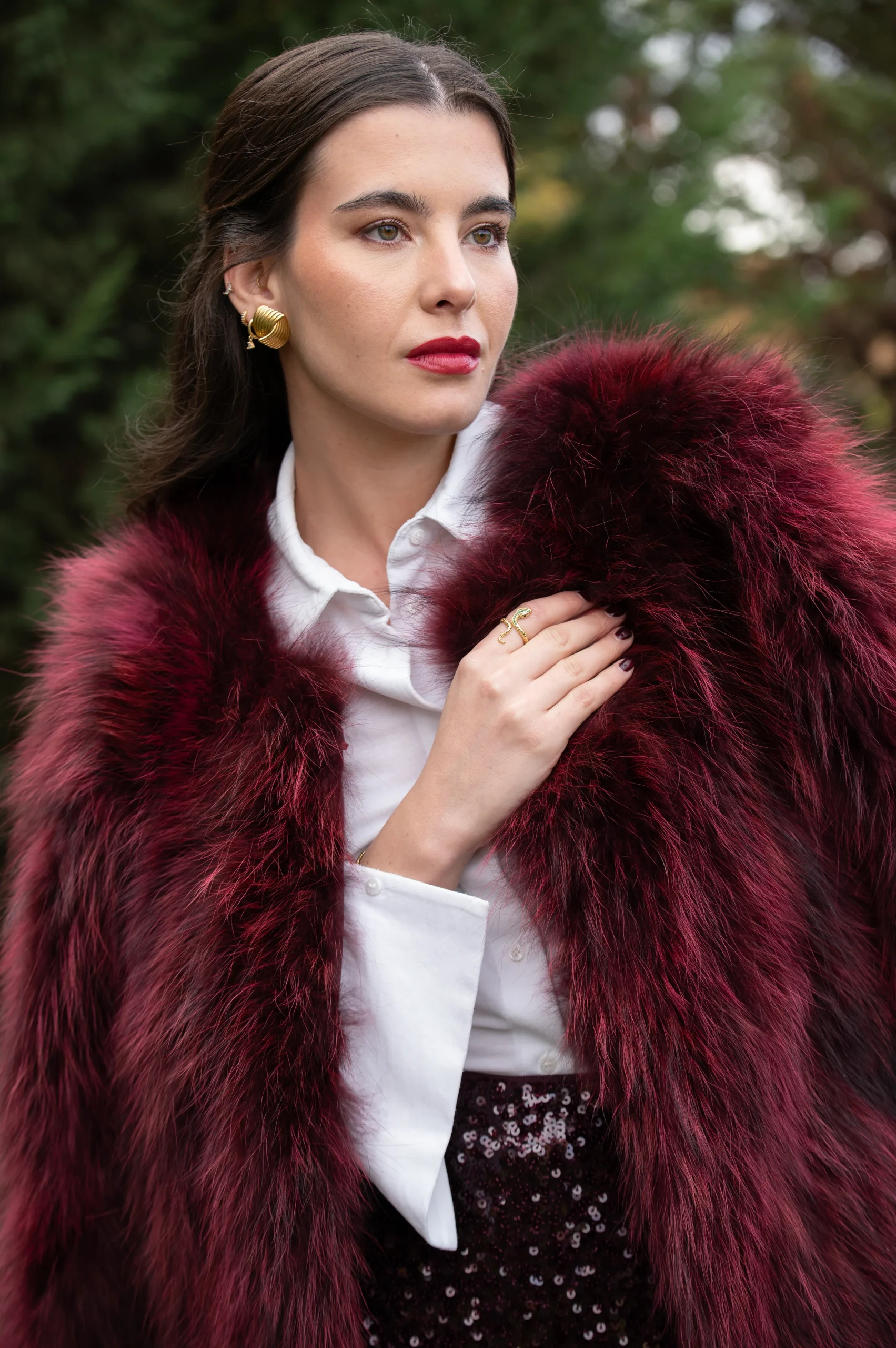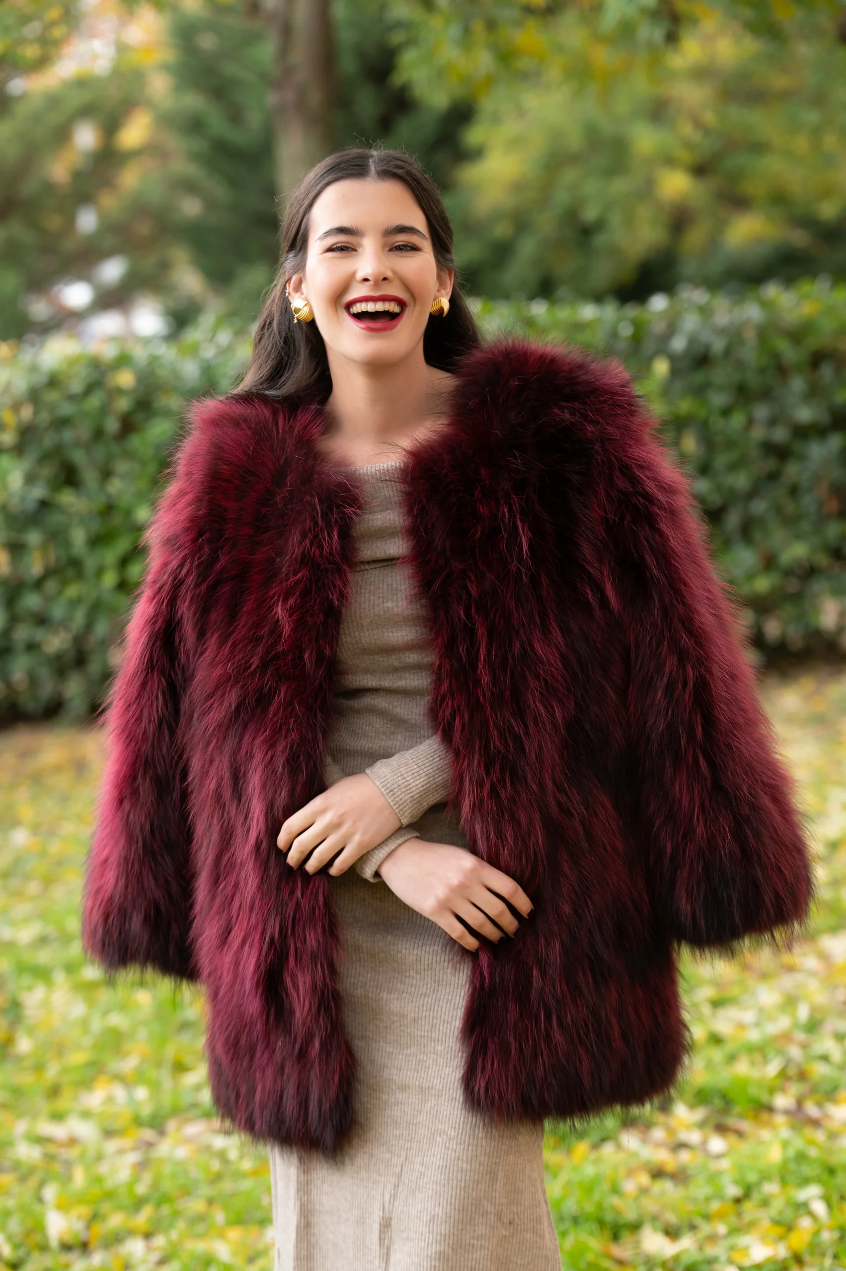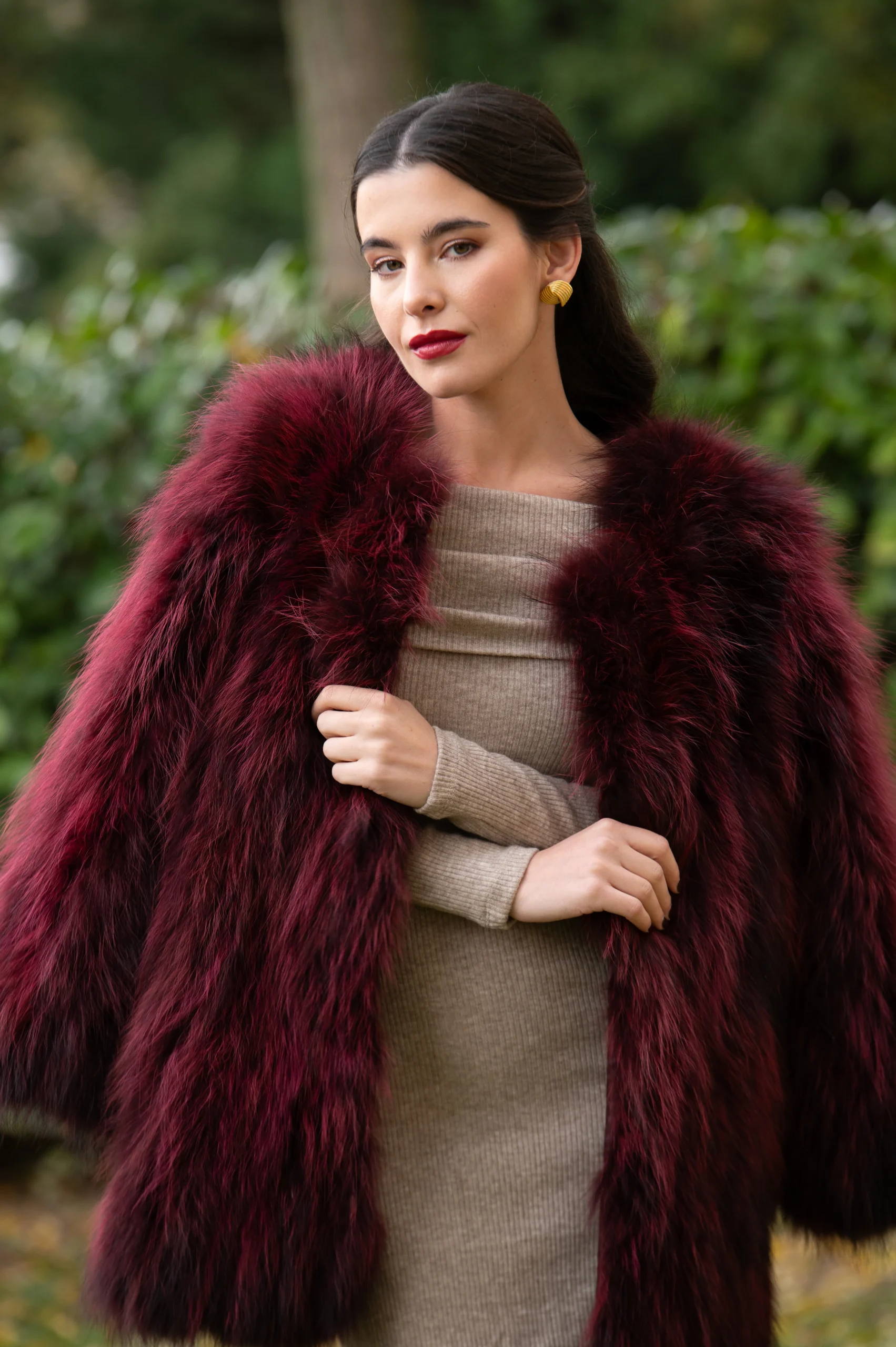 Abrigo en 100% piel natural de Fox, color Burdeos . Talla 脷nica .