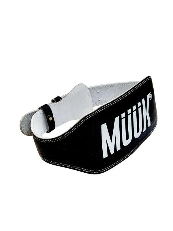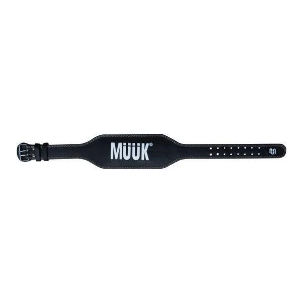 Cintur贸n Muuk de cuero para levantamiento de pesas. Asegura un ajuste perfecto y c贸modo para prevenir lesiones.