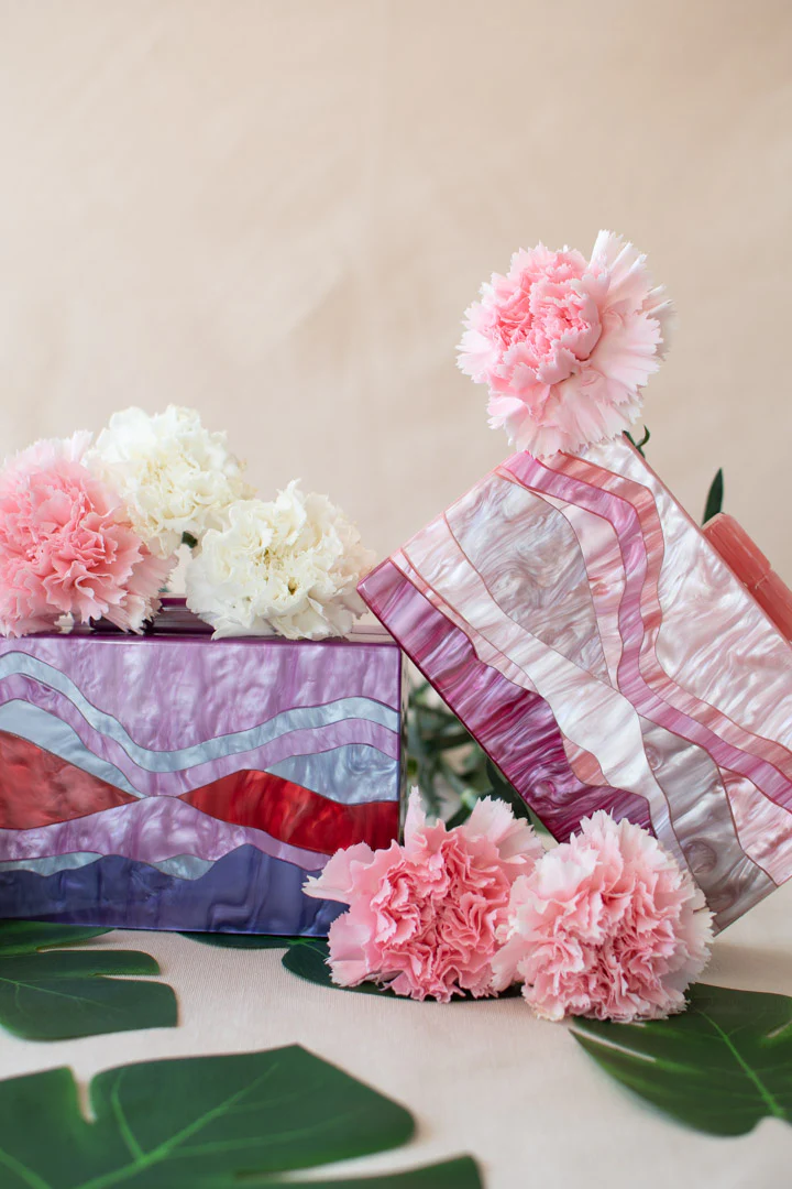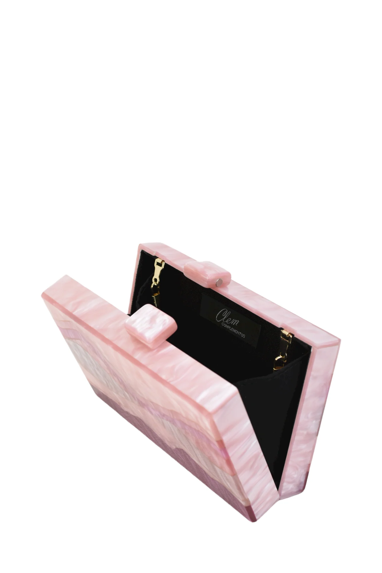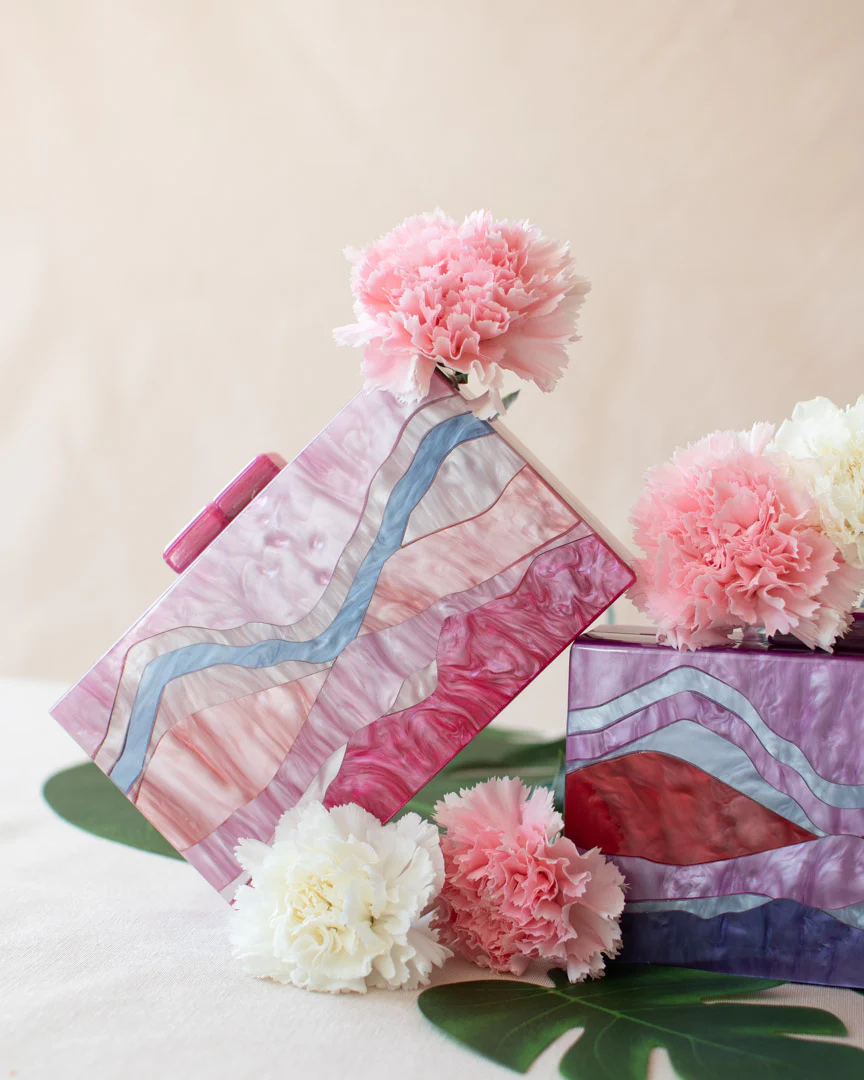 Clutch metacrilato en colores rosas en sus dos caras.