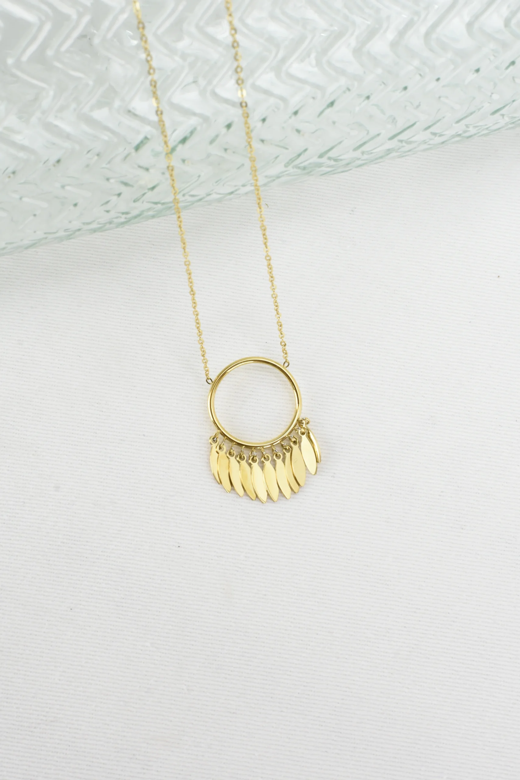 Colgante gargantilla de cadena en acero con un ba帽o en oro . Medida de 40cm a 45cm aproximadamente.