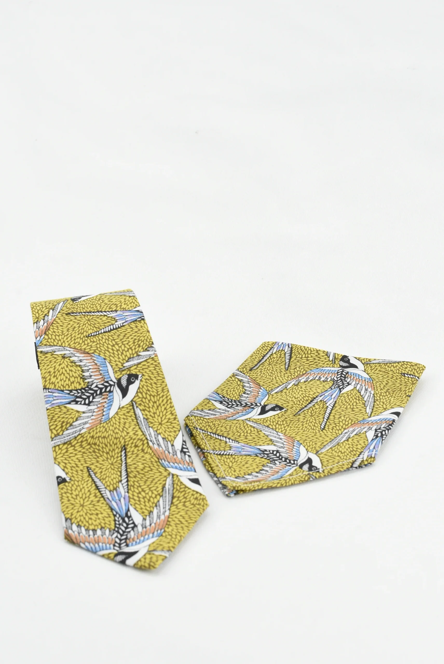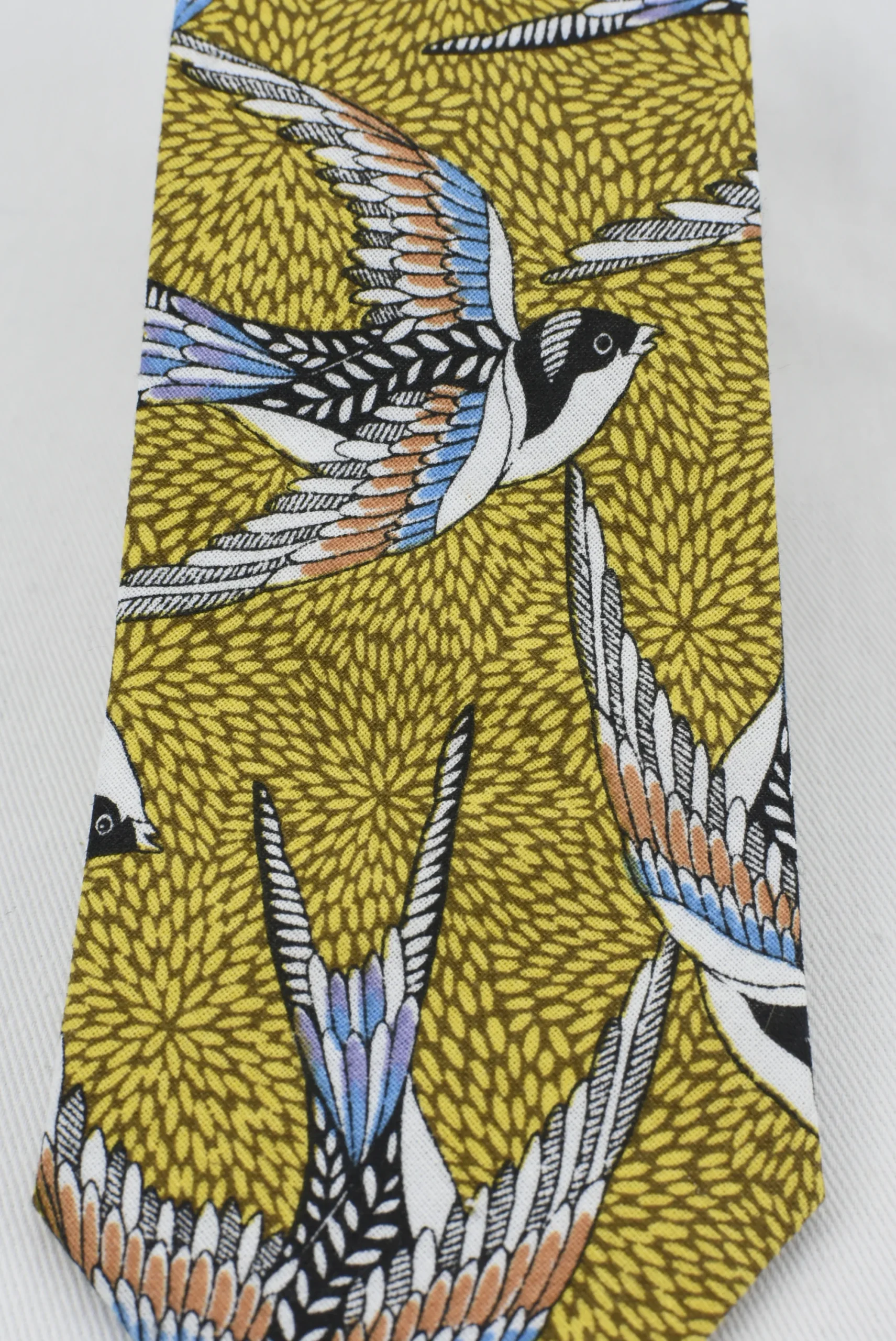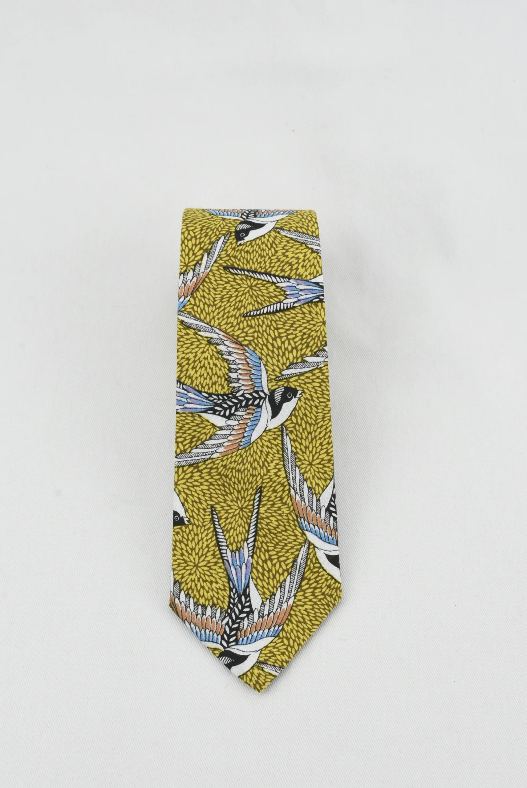 Luce sofisticado y elegante con la Corbata Golondrina Azul. Esta ex贸tica corbata hecha de algod贸n de fondo amarillo, destaca un motivo golondrina para agregar toque de estilo con una mirada 煤nica. Esta corbata es la opci贸n perfecta para un look de clase y refinamiento.
