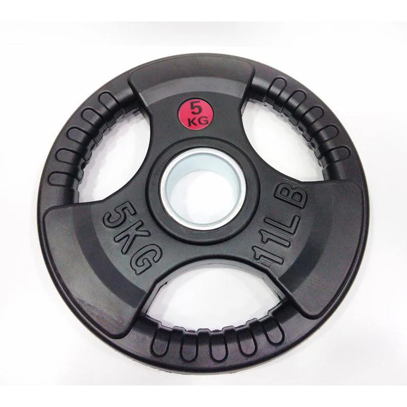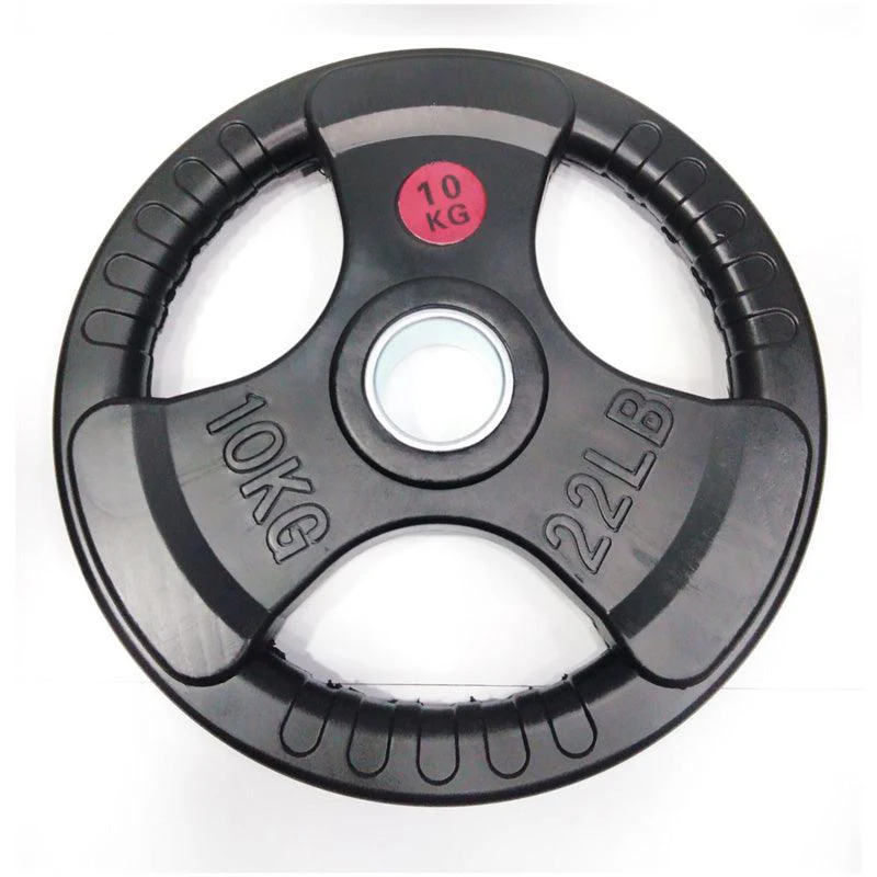Los discos con agarre son extremadamente vers谩tiles ya que se pueden utilizar de forma independiente a la barra. Est谩n hechos en acero , recubierto en caucho con anillo central para f谩cil uso con la barra.