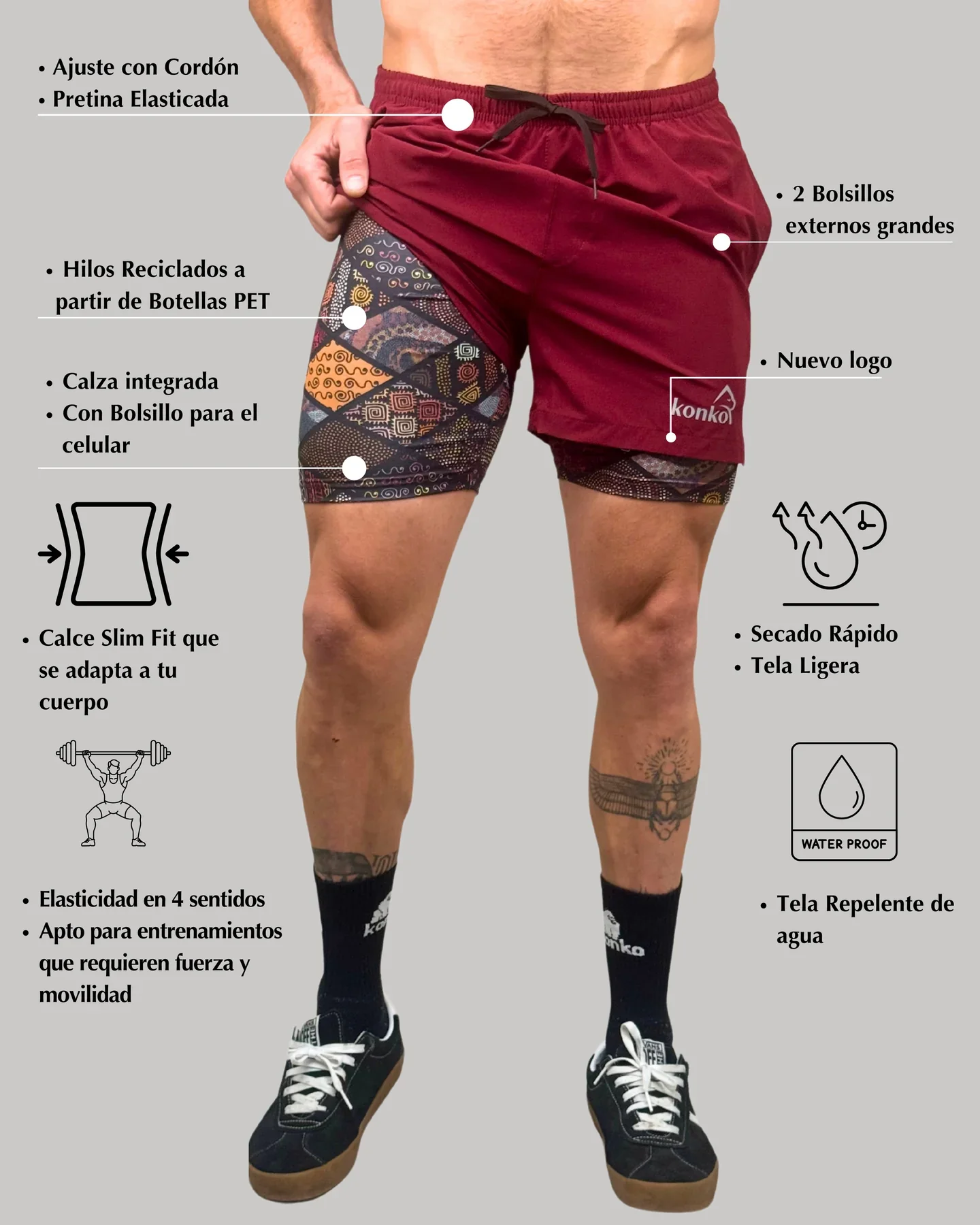 Cada unidad de Eco Short 2 en 1 reciclado recupera 13 botellas pl谩sticas PET de 500 ml.