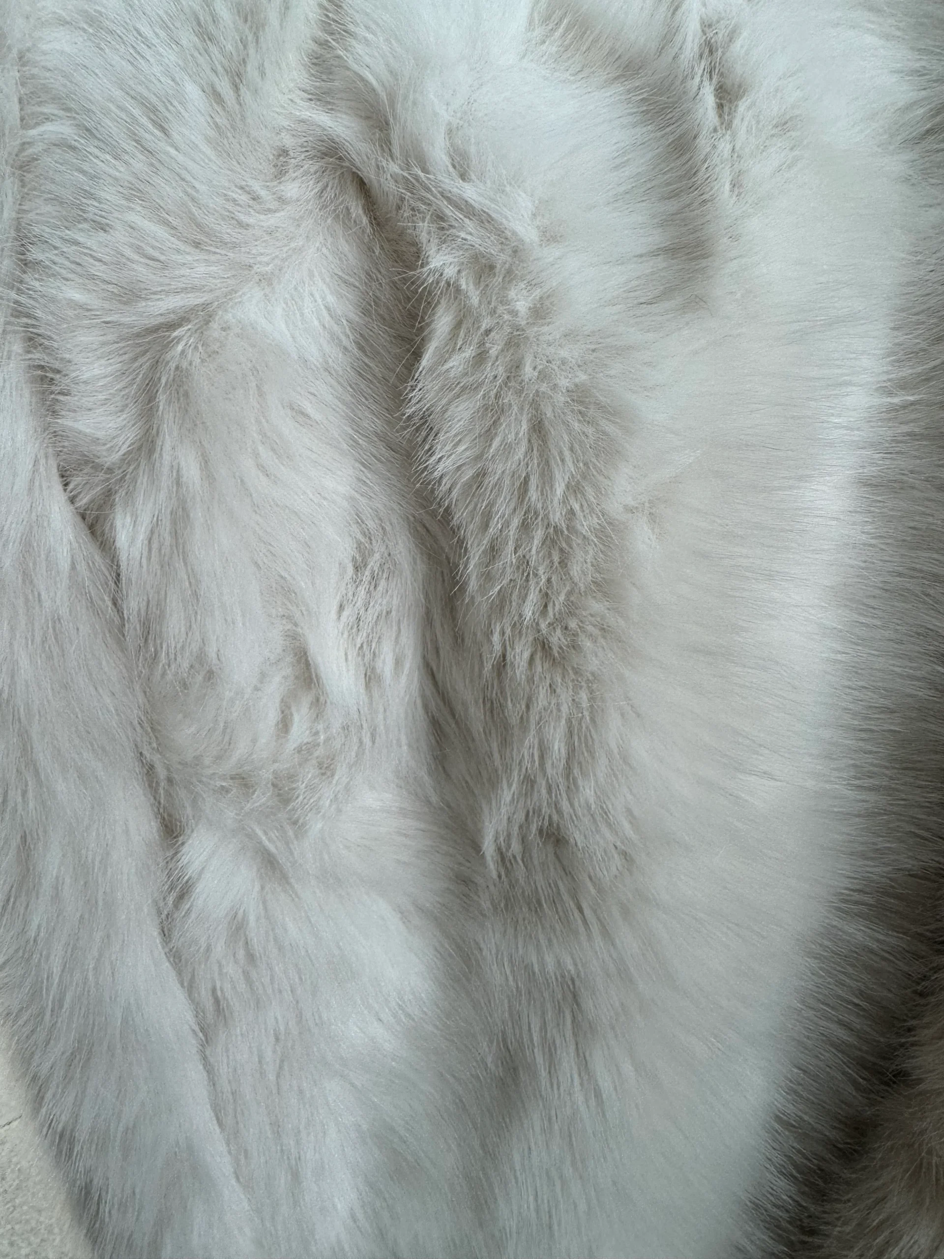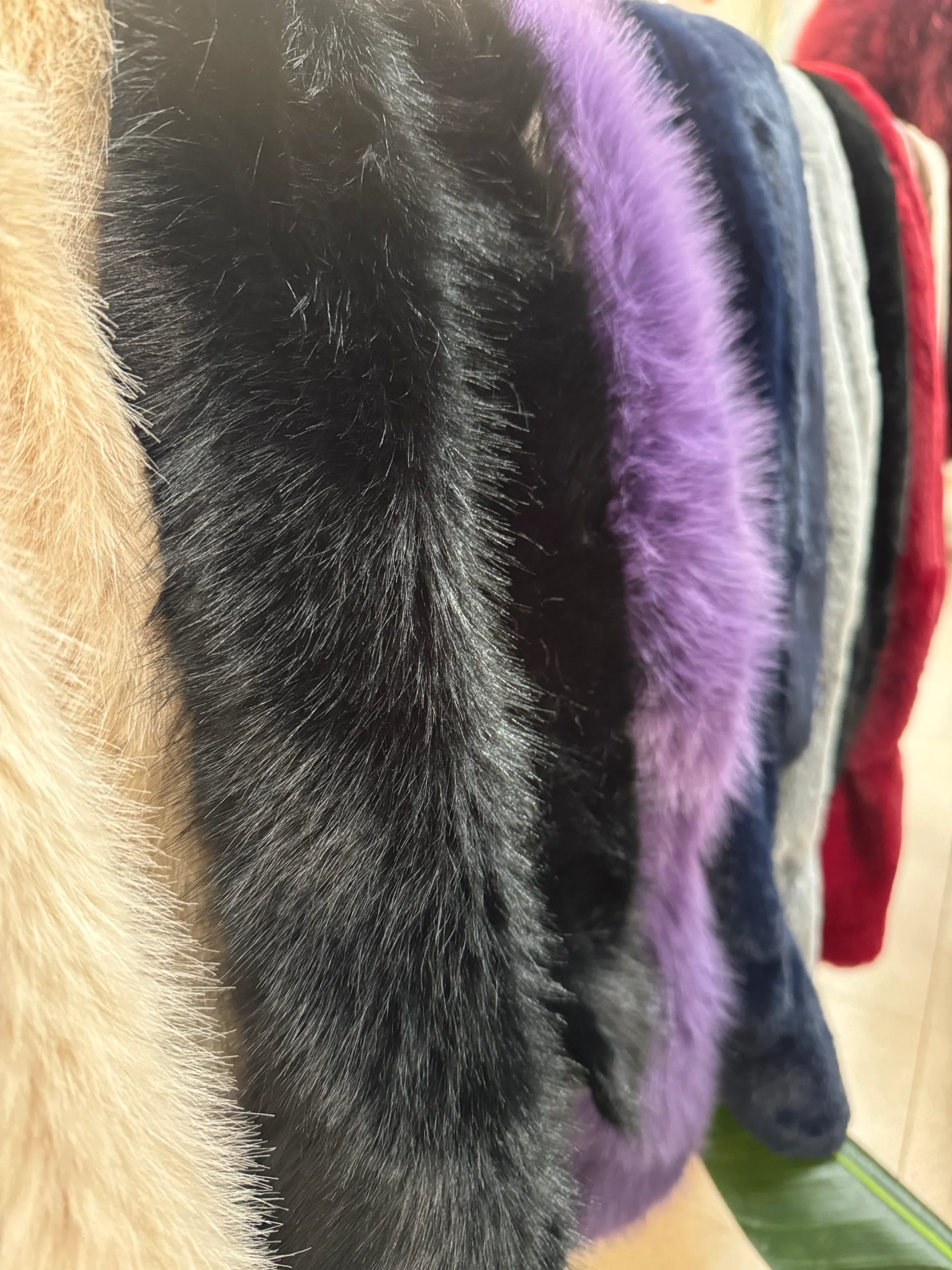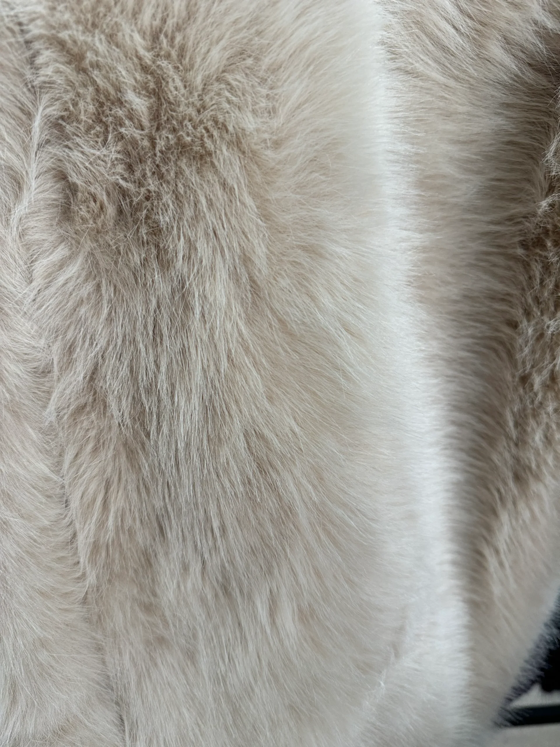 Estola de pelo sint茅tico con cuello y forro de raso, el pelo no brilla.