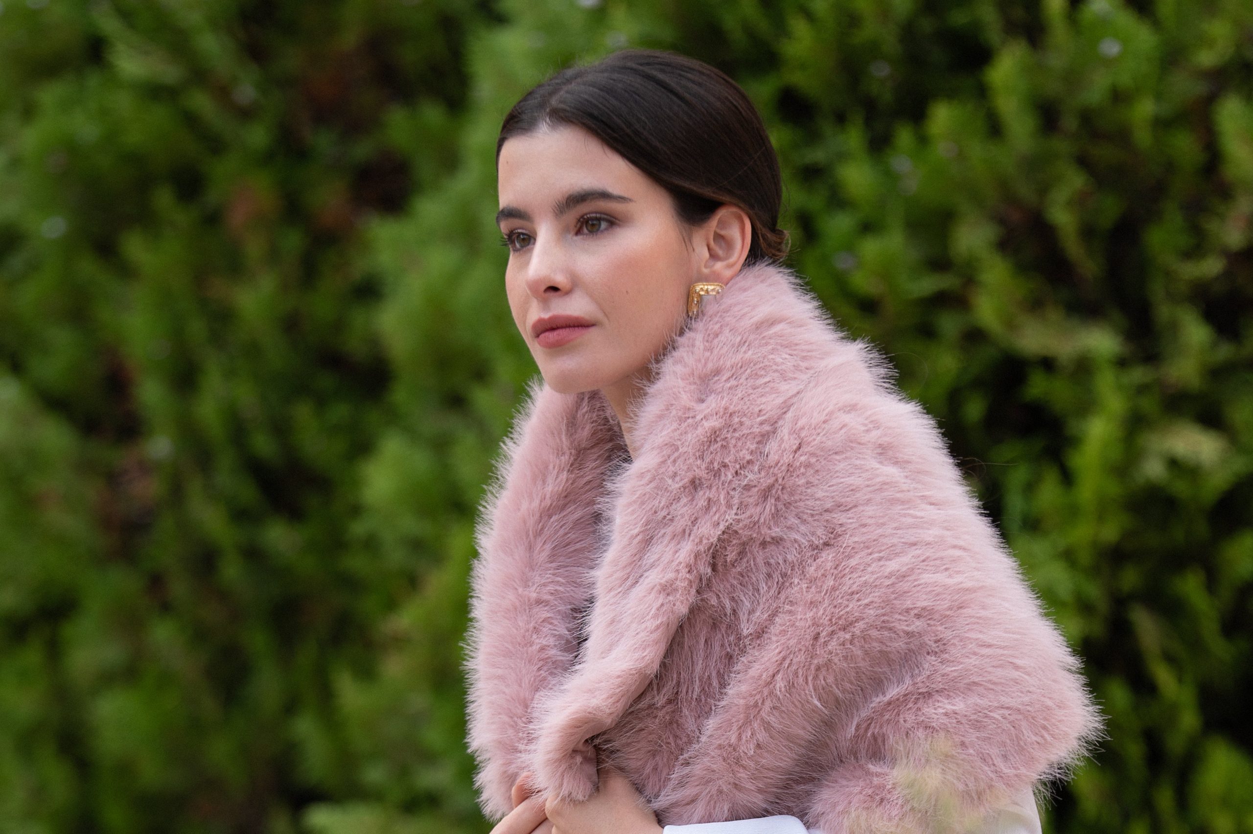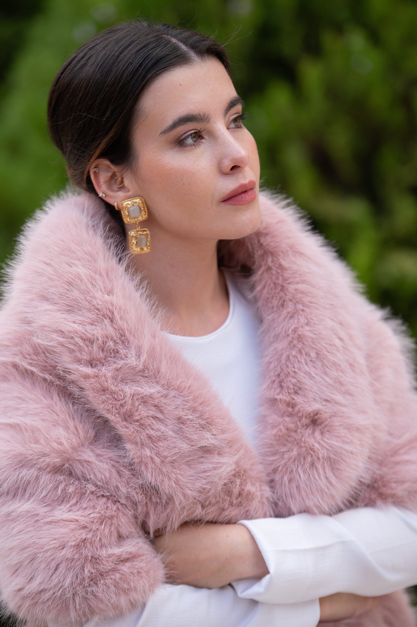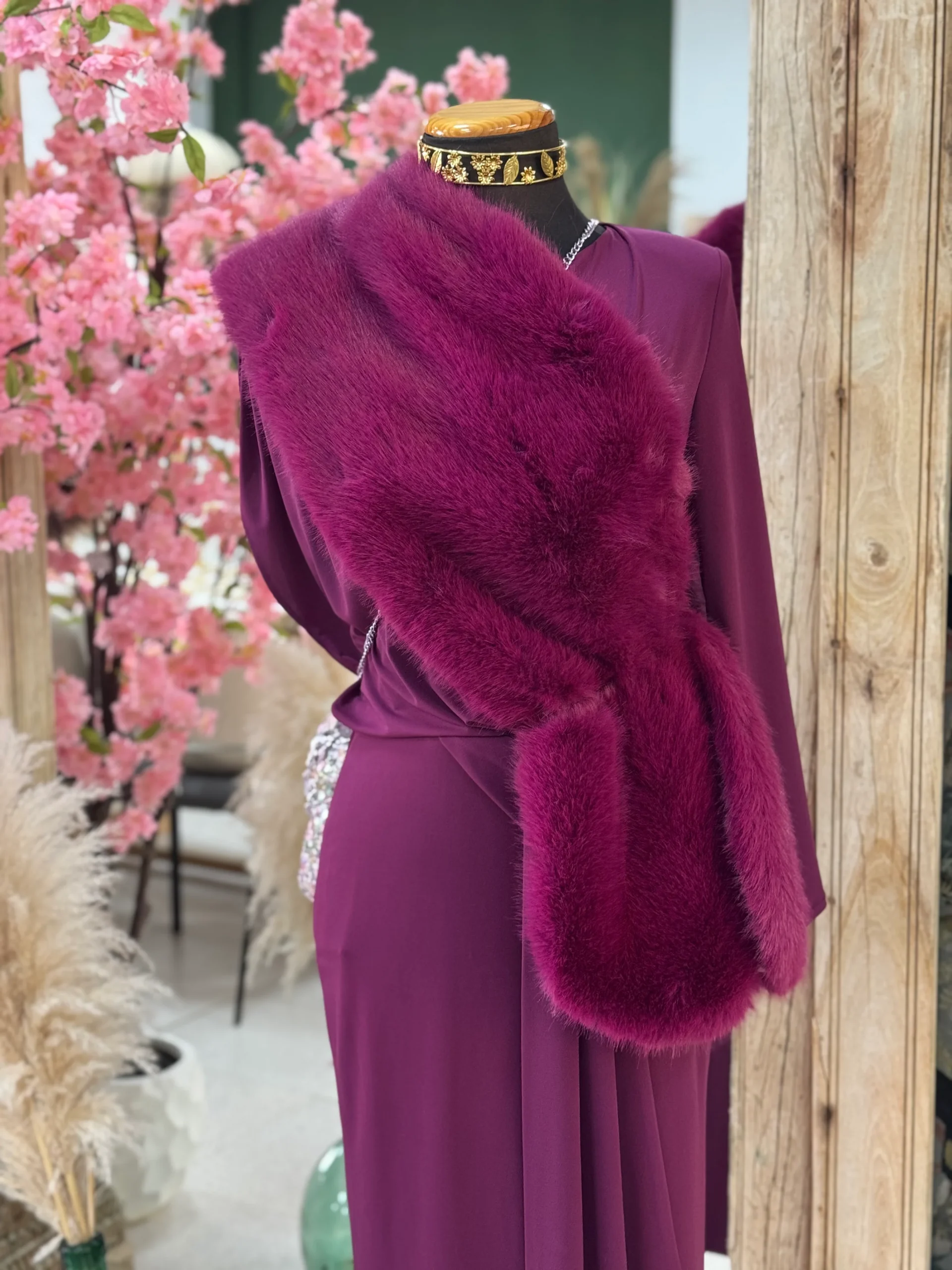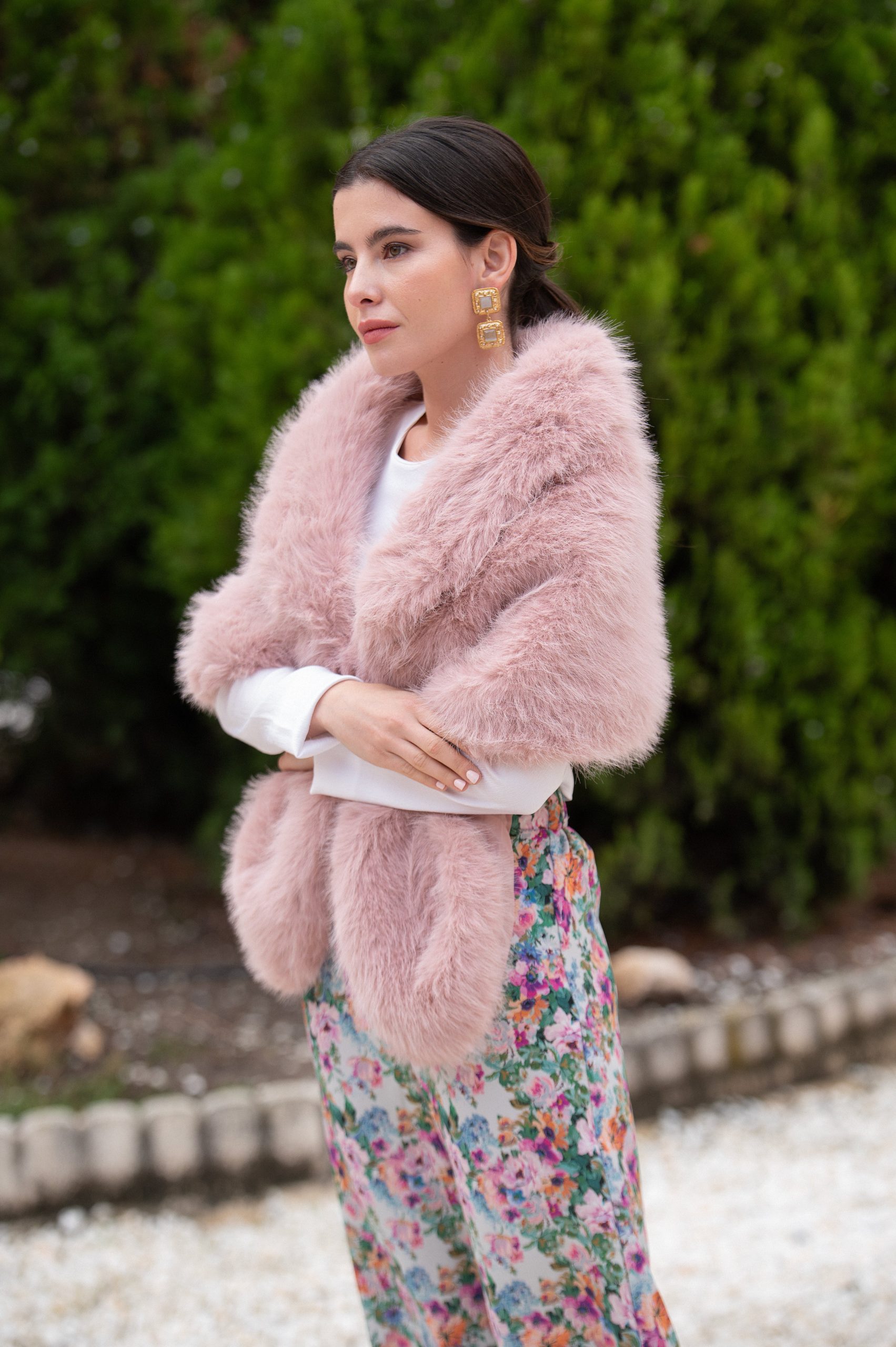 Estola de pelo sint茅tico con cuello y forro de raso, el pelo no brilla.
