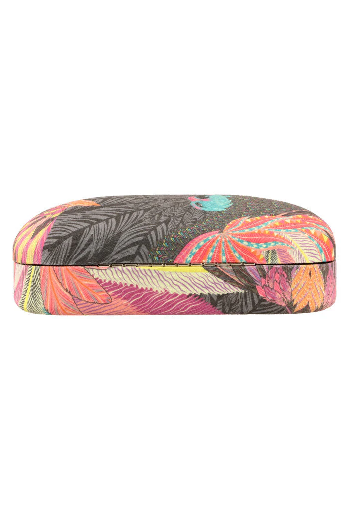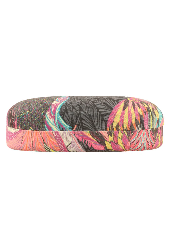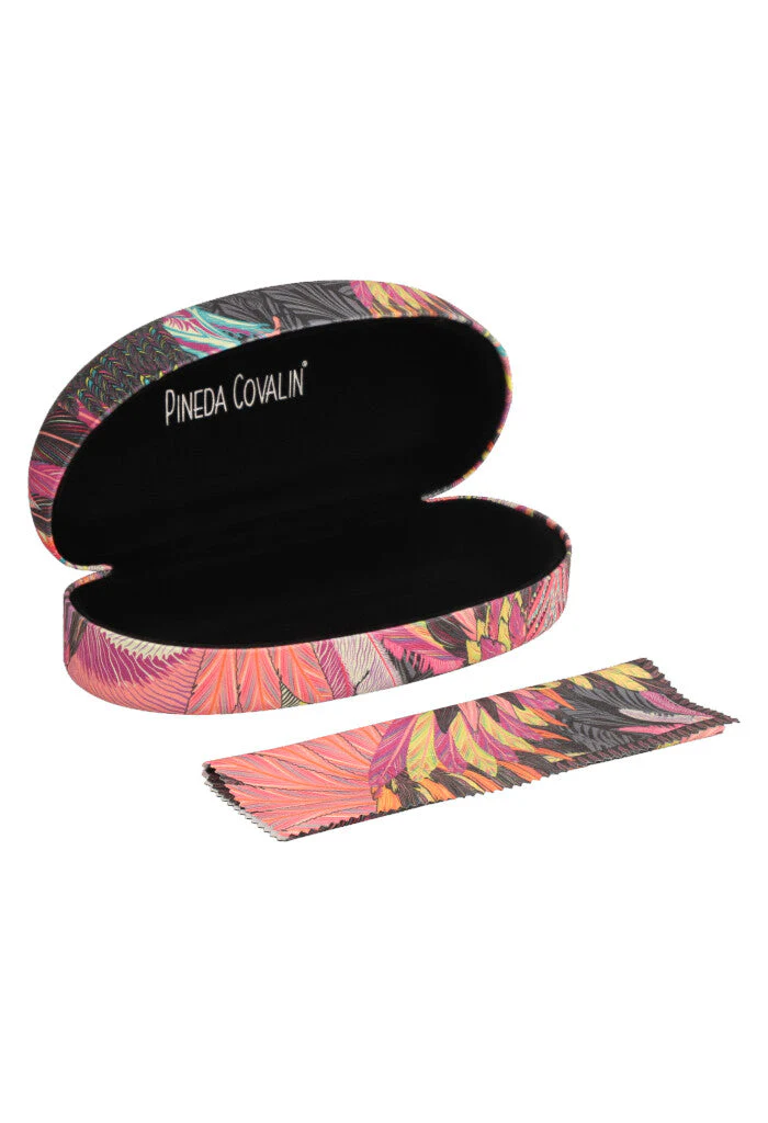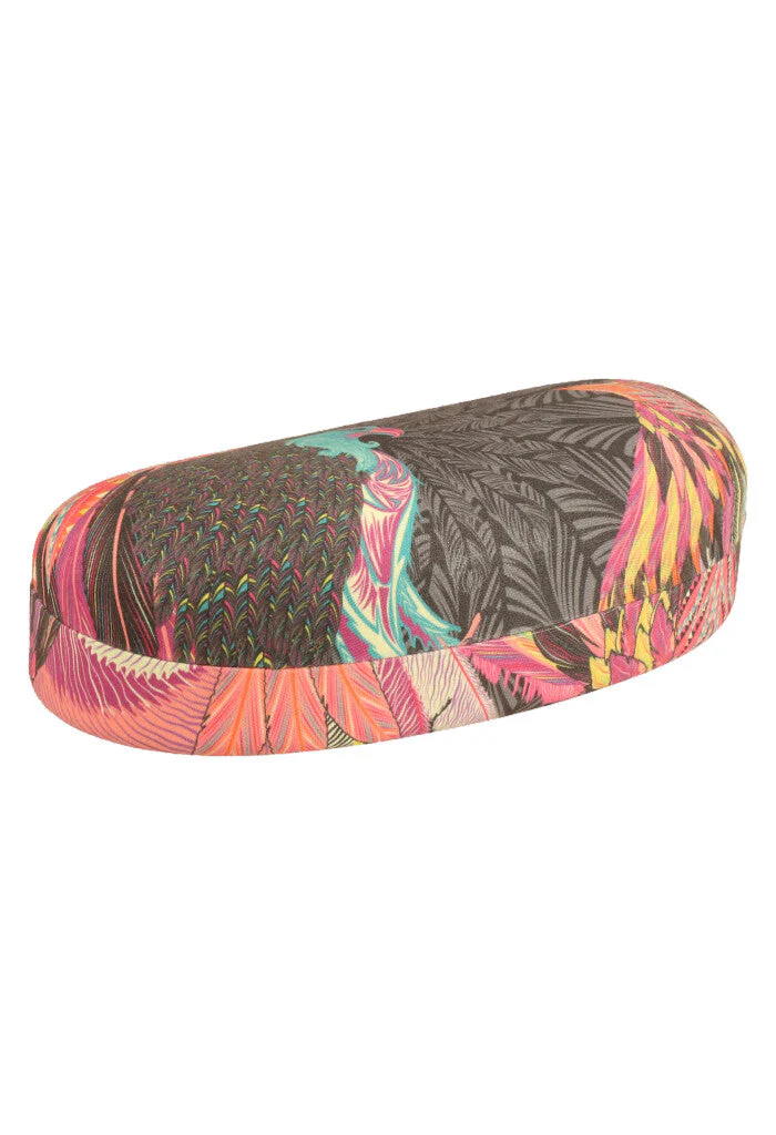 Estuche estampado para almacenar lentes para el sol. Cuenta con paño a juego para limpiar los lentes sin rayarlos.