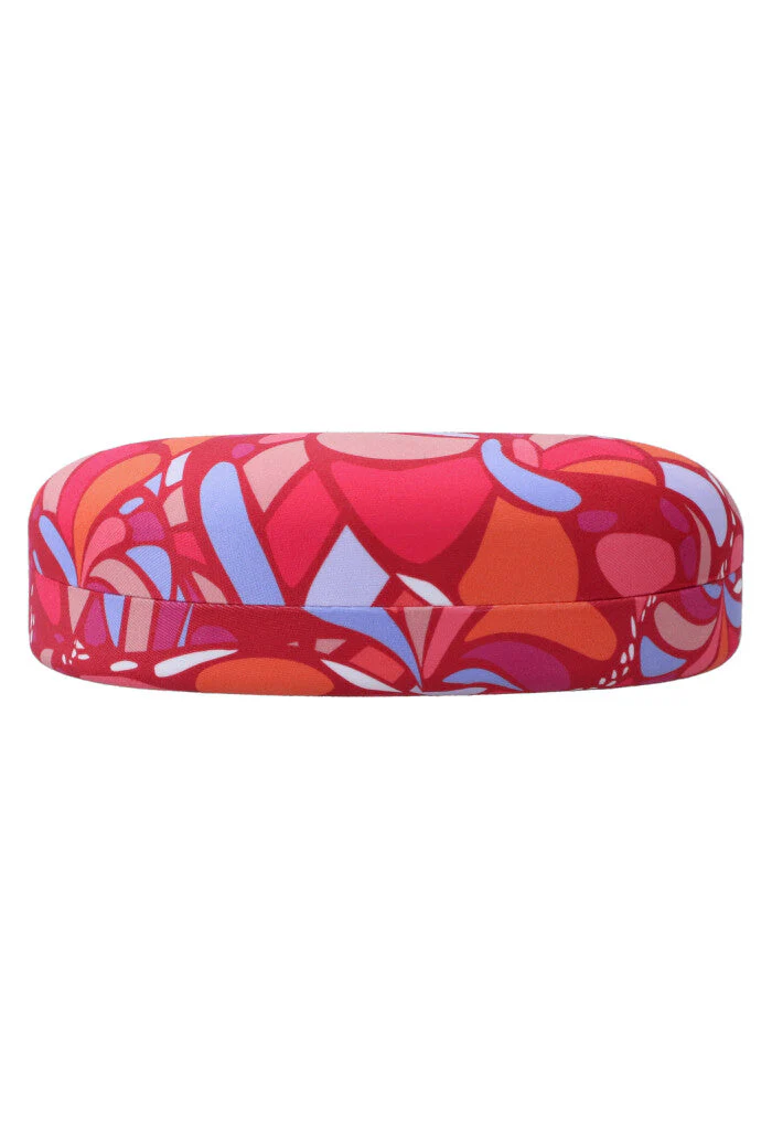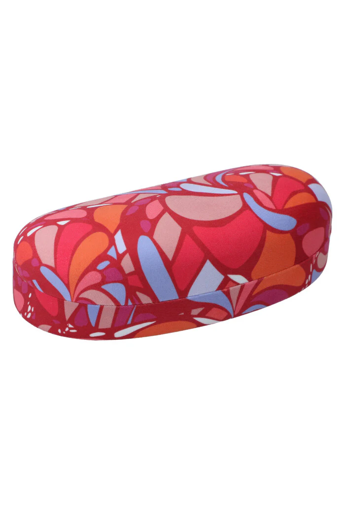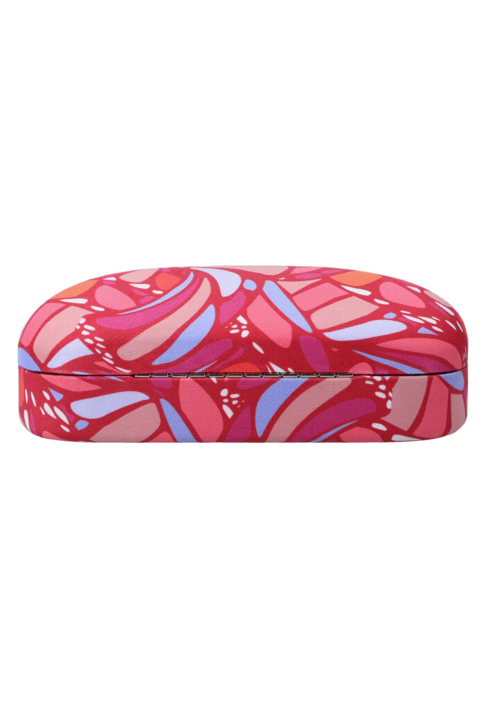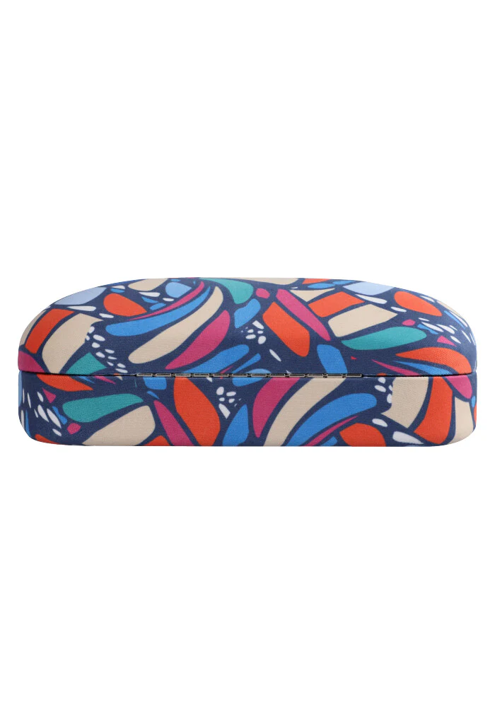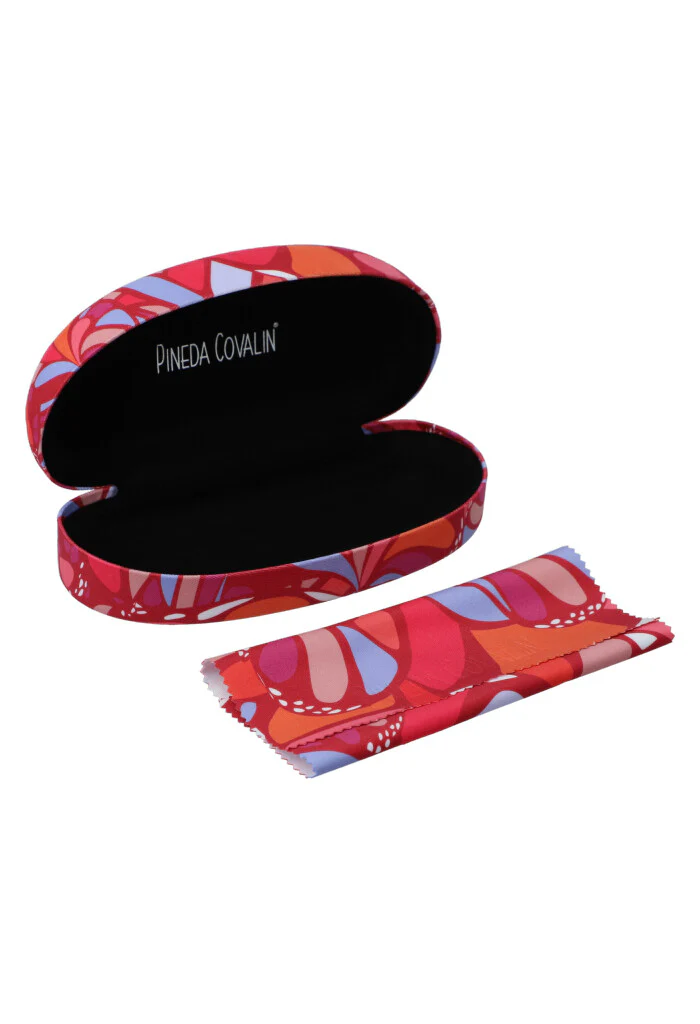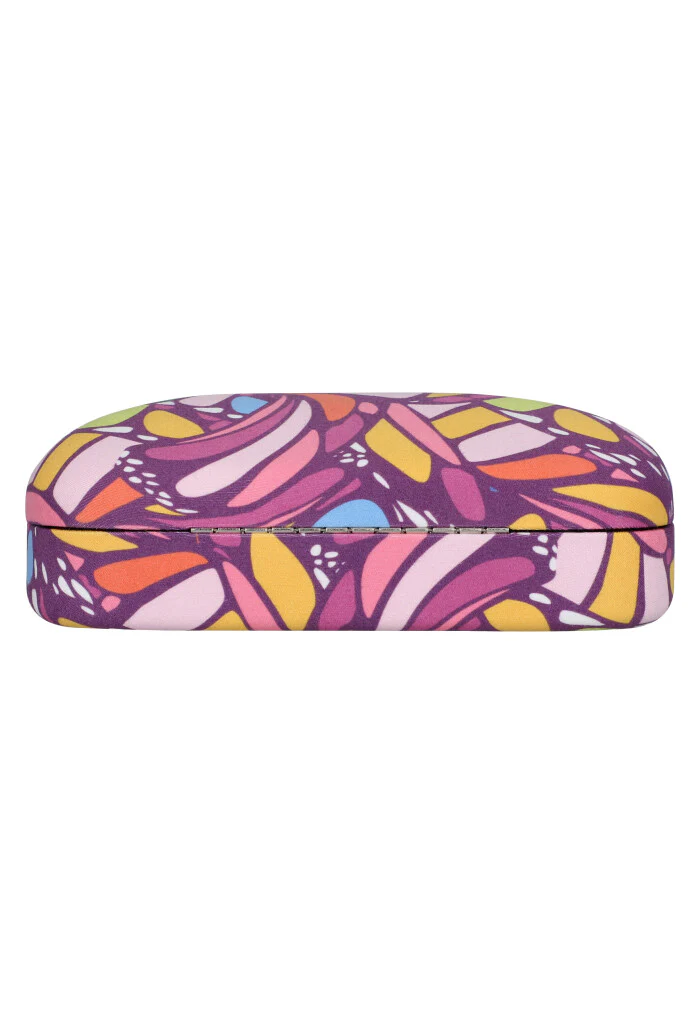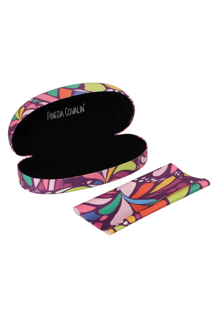 Estuche estampado para almacenar lentes para el sol. Cuenta con paño a juego para limpiar los lentes sin rayarlos.