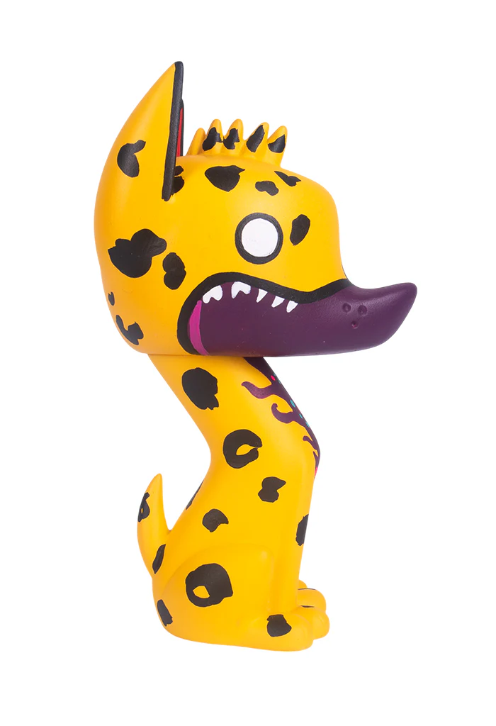 Escultura de vinil que por sus colores asemeja una figura de cer谩mica.