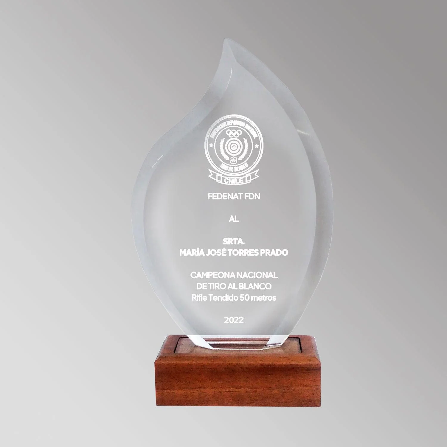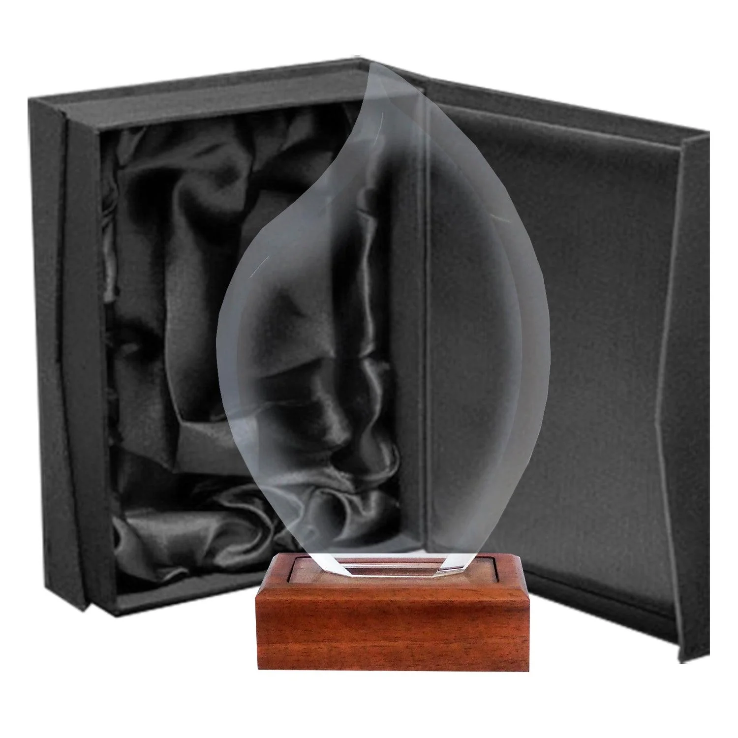 Galvano de cristal y base de madera con un alto índice de refracción. Perfecto para grabado láser.