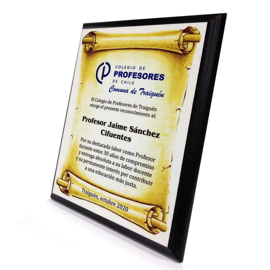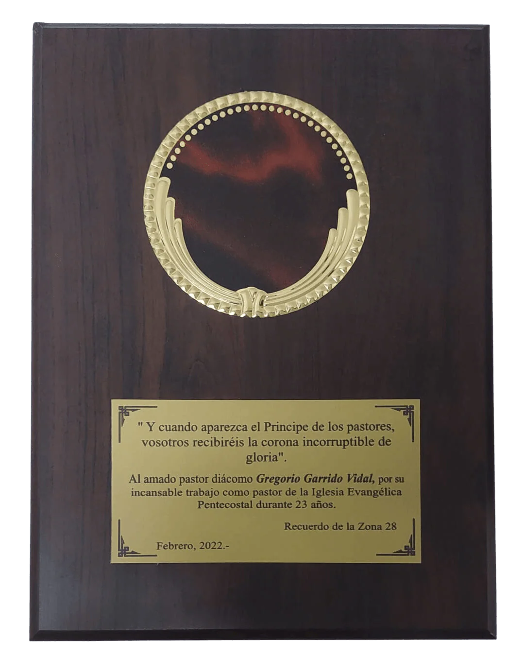 GALVANO FORMATO MADERA OREGON CON FONDO TERCIOPELO