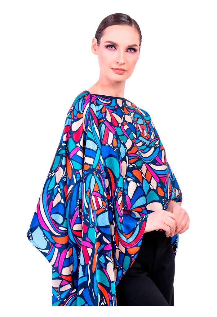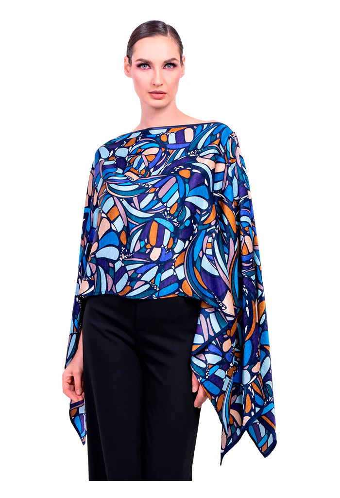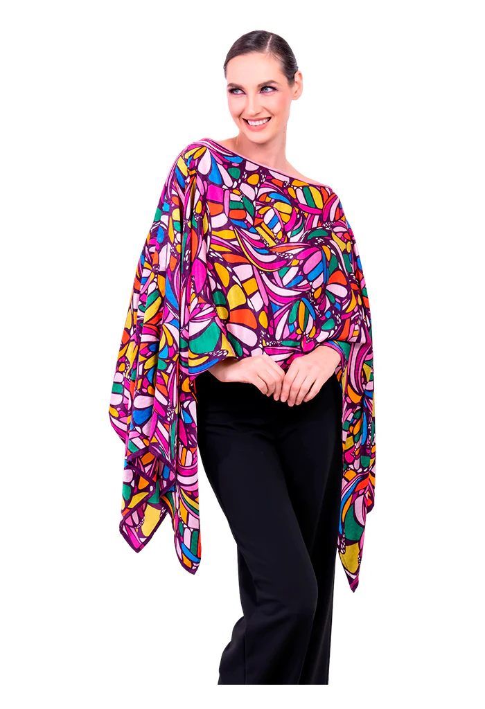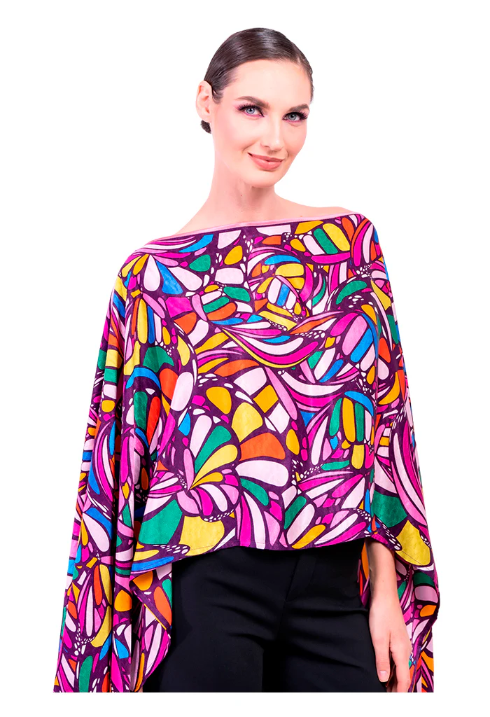 Huipil estampado con escote en V. Su corte permite lucirlo de diferentes maneras. Prenda vers谩til para todas las tallas.