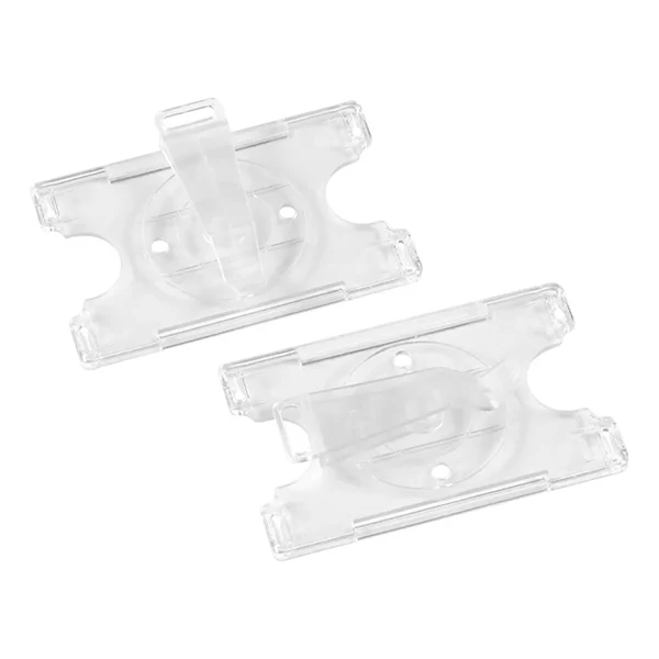 Porta-credencial acr铆lico rotatorio. Tama帽o tarjeta de cr茅dito. Visibilidad por una cara.