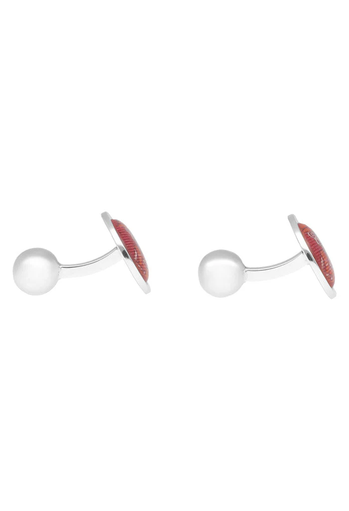Mancuernillas con seda encapsulada en resina.