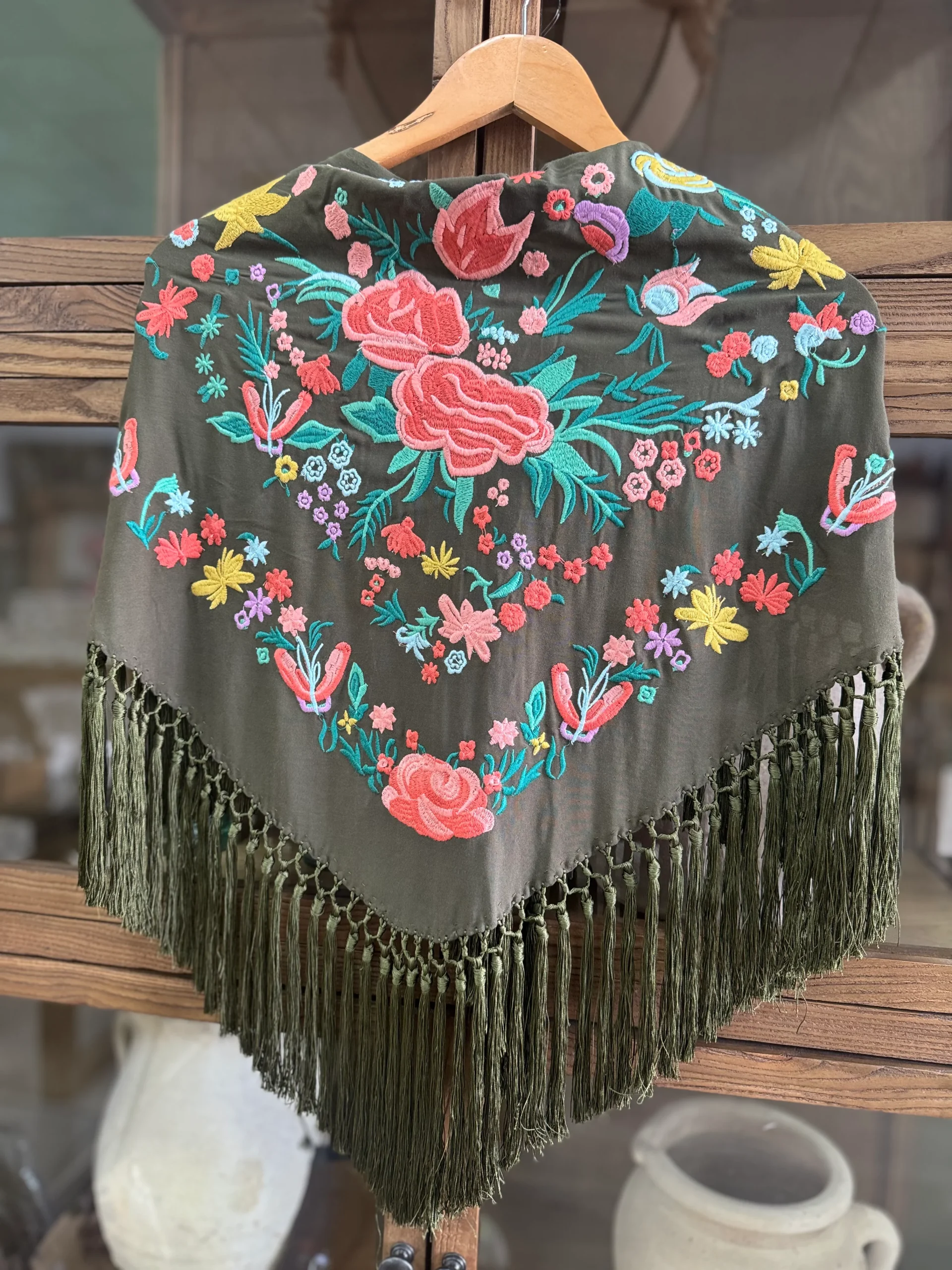 Descubre la belleza de nuestro mantoncillo artesanal, una pieza 煤nica que fusiona la tradici贸n andaluza con un dise帽o elegante y confortable. Cada mantoncillo est谩 meticulosamente bordado con hilo de seda, sobre un delicado tejido de seda, otorg谩ndole un brillo sutil y una suavidad inigualable al tacto.