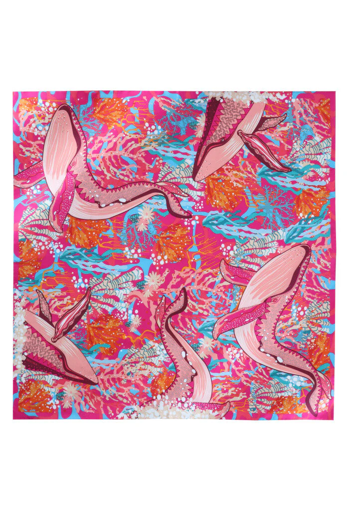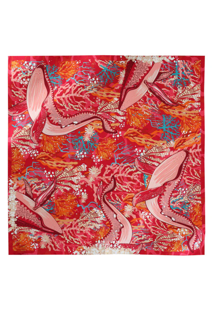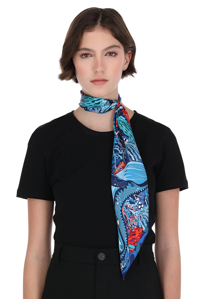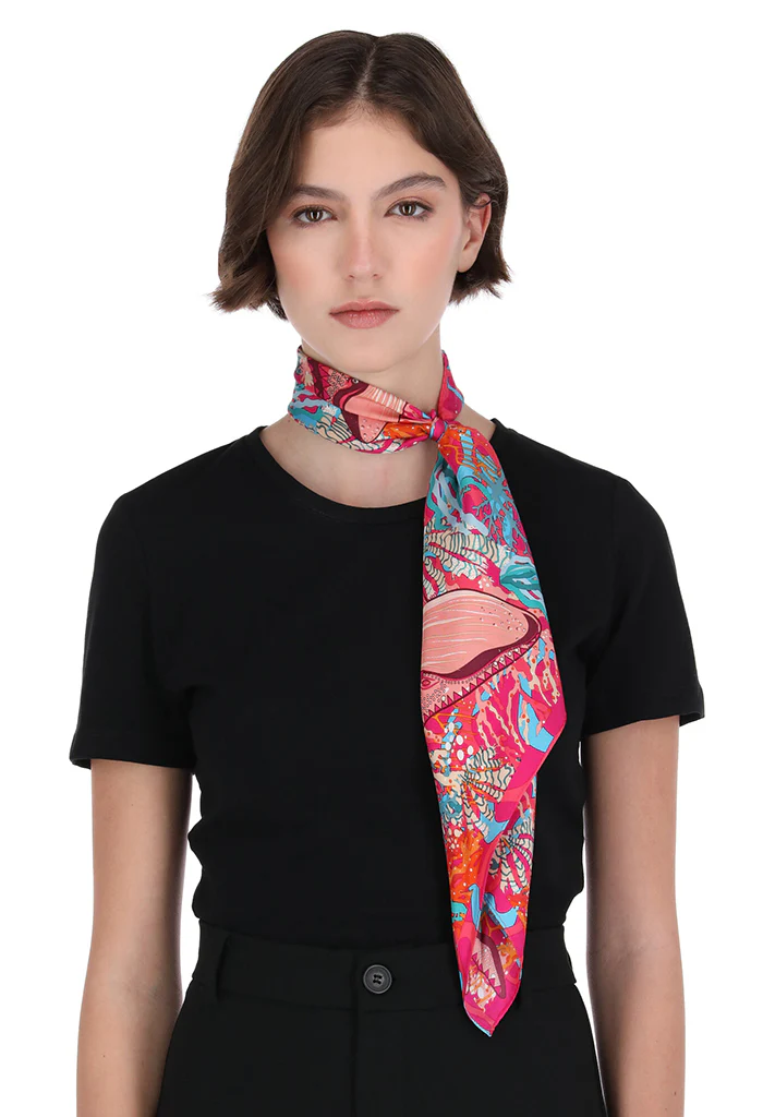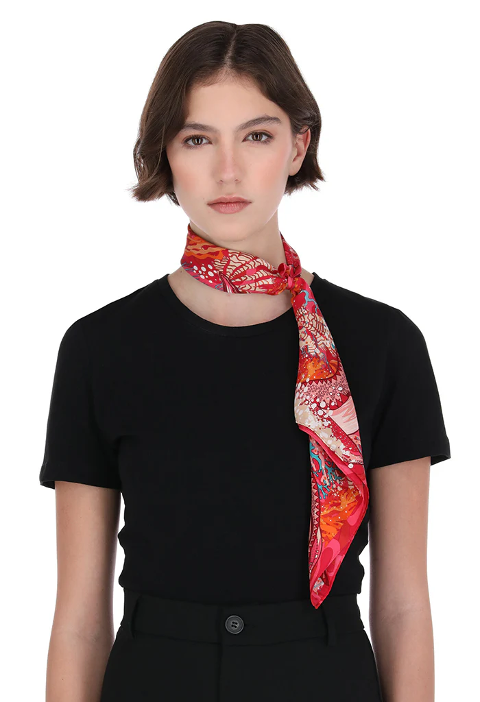 Mascada cuadrada con orilla enrollada y cosida a mano.