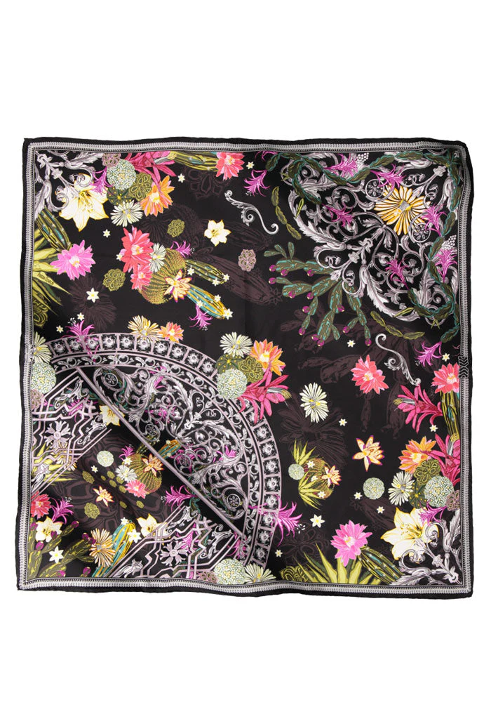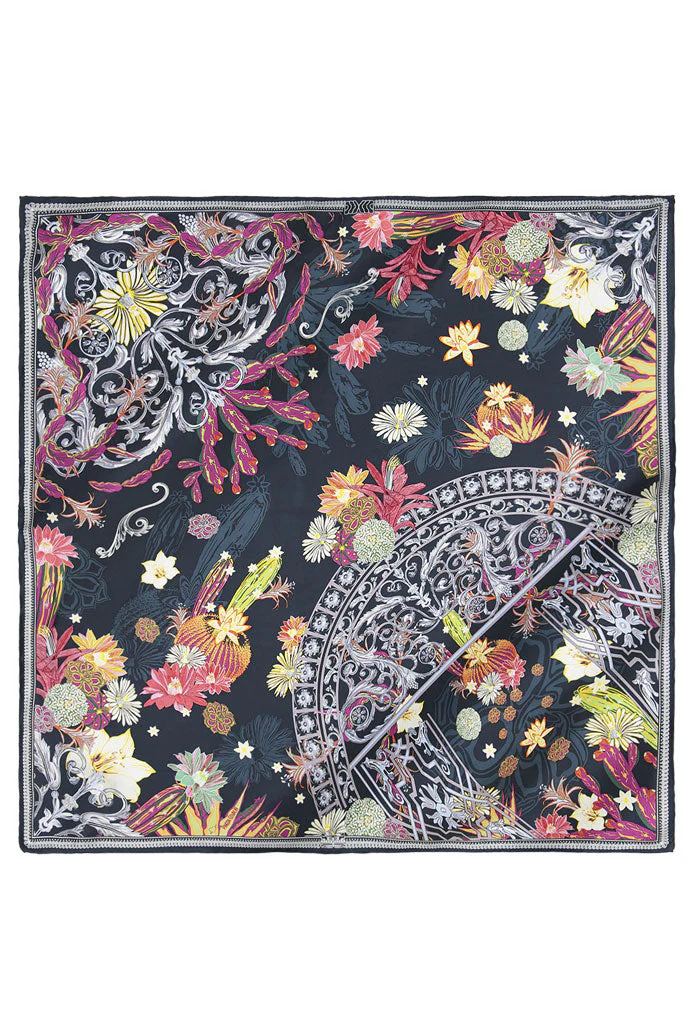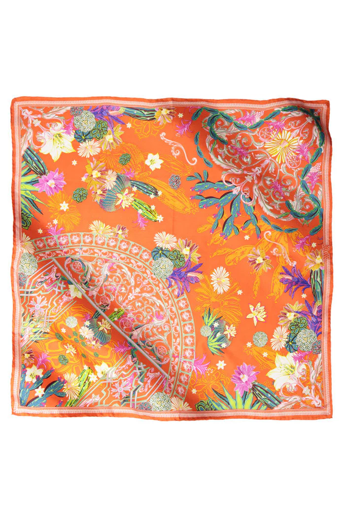 Mascada cuadrada con orilla enrollada y cosida a mano.