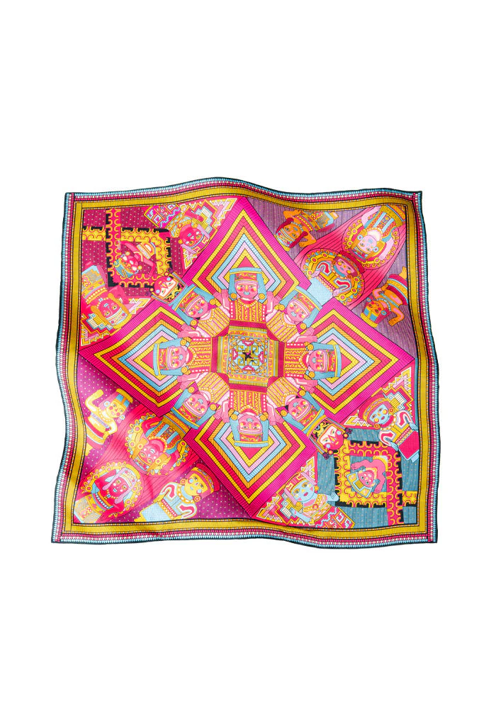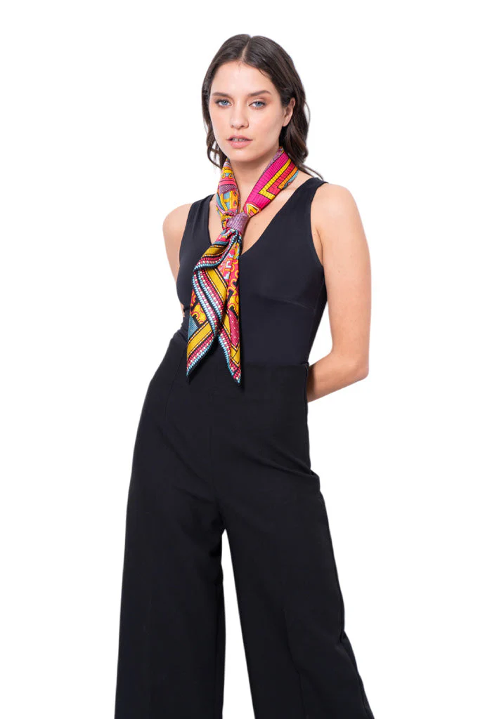Mascada cuadrada con orilla cosida.
