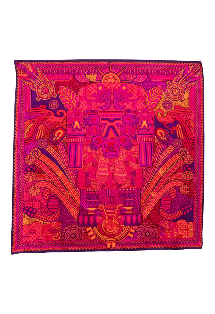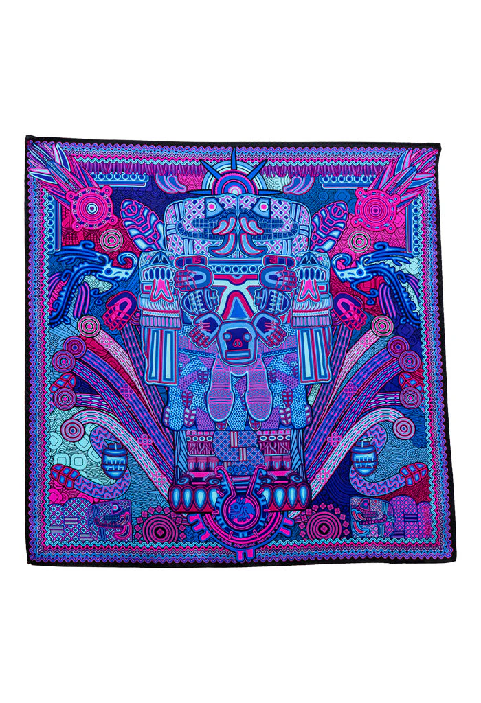Dise帽o inspirado en Coatlicue, la madre creadora de los dioses en la mitolog铆a mexica: madre del sol, la luna y las estrellas. De figura femenina, lleva falda de serpientes y tiene una gran cabeza formada por dos serpientes que al unirse crean un rostro con una lengua b铆fida y grandes colmillos simbolizando la dualidad y la unidad. El monolito de Coatlicue, de cuerpo antropomorfo, une numerosos simbolismos de la cosmovisi贸n mexica. Fue labrada aproximadamente en el a帽o 1506 para la celebraci贸n del Fuego Nuevo con el fin transmitir un mensaje de poder铆o espiritual.
