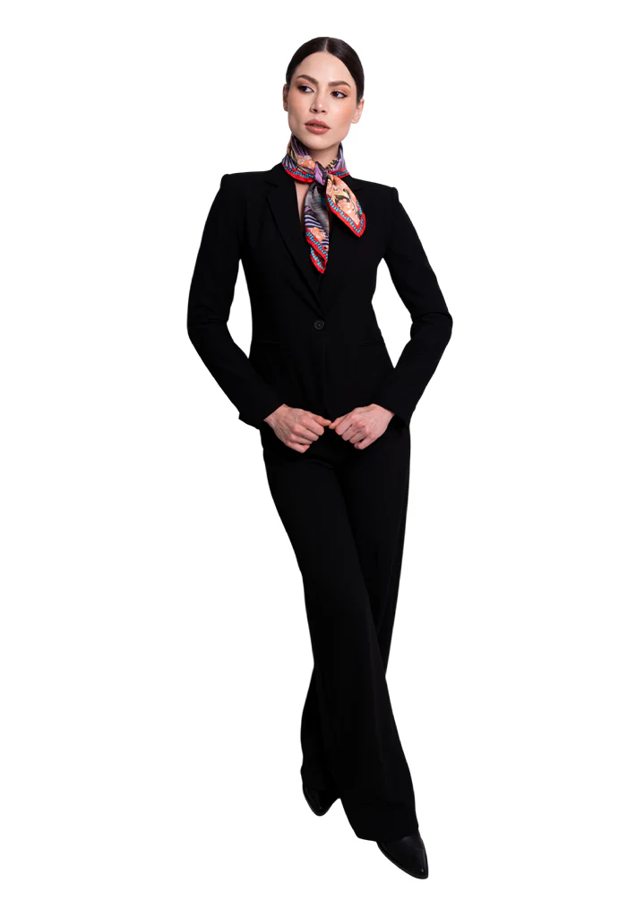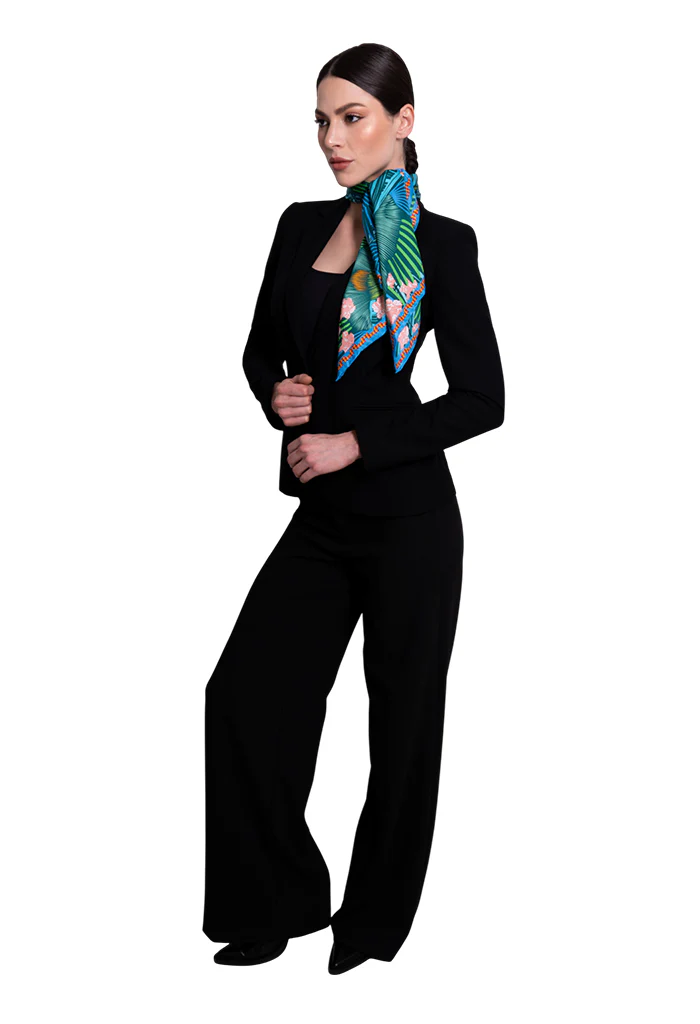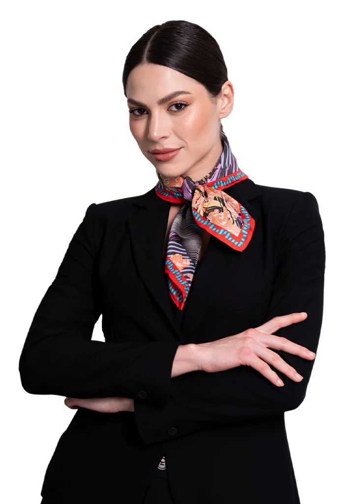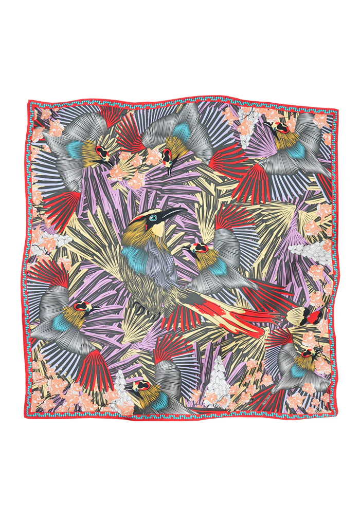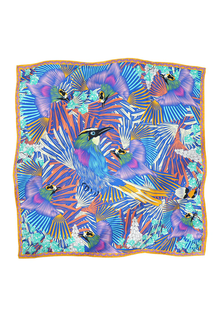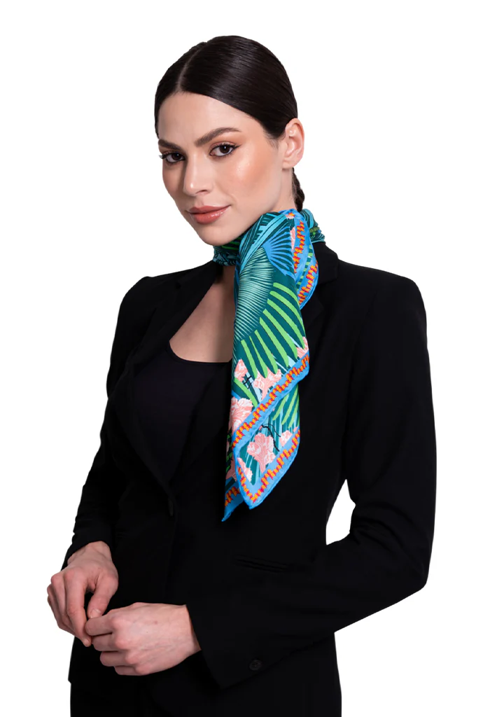Mascada cuadrada con orilla enrollada y cosida a mano.