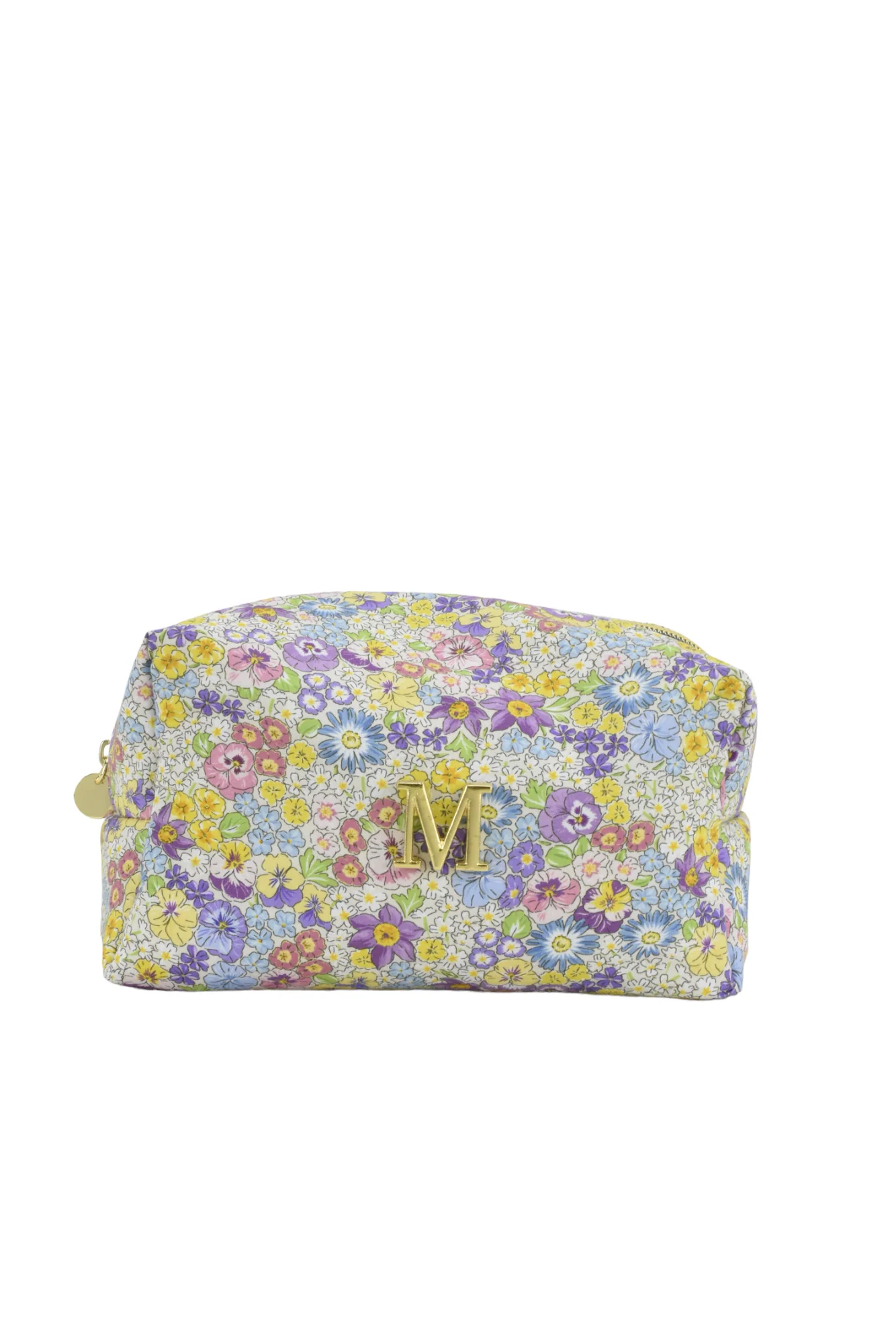 Neceser con cremallera confeccionada a mano en tejido Liberty . Interior forrado de polipiel para que sea fácil de limpiar . Opción a personalizar con tu inicial, en nuestro personalizado especial hecho en bronce con un un baño en oro.