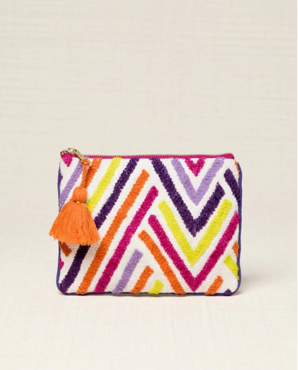 Colorida y funcional, esta bolsita tama帽o mediano con estampado vibrante es el accesorio perfecto para llevar tus esenciales con estilo. Su dise帽o vers谩til te permite usarla como neceser, estuche o mini clutch, a帽adiendo un toque de alegr铆a y sofisticaci贸n a tu d铆a a d铆a.