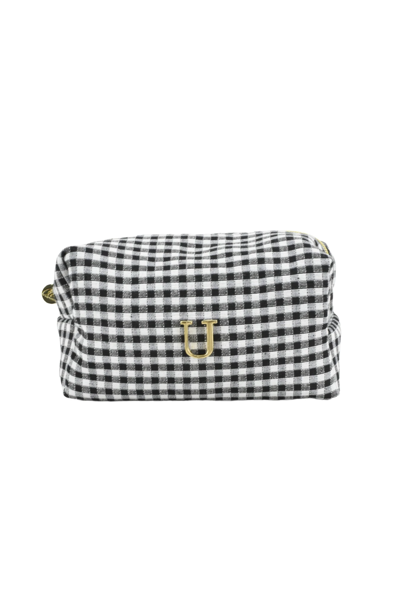 Neceser con cremallera confeccionada a mano en tejido Gobelino en cuadros Vichy. Interior forrado de polipiel para que sea fácil de limpiar . Opción a personalizar con tu inicial, en nuestro personalizado especial hecho en bronce con un un baño en oro.