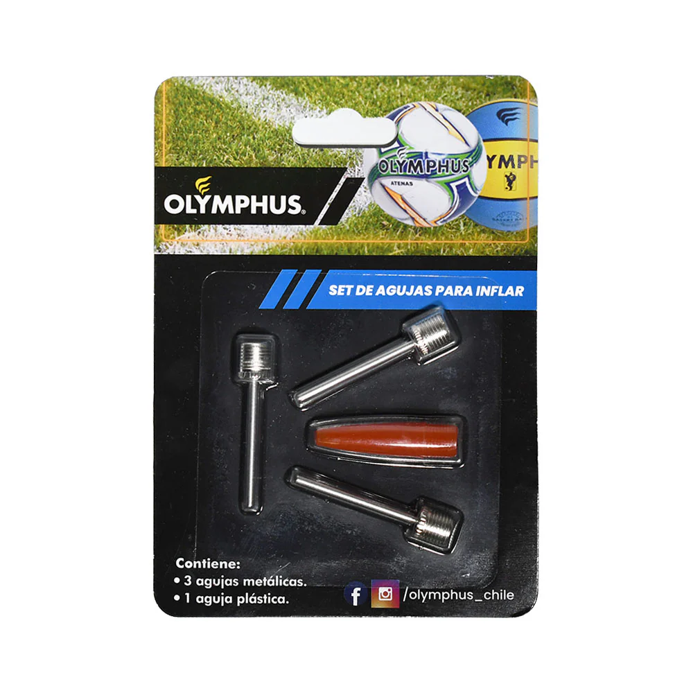 Set de 4 agujas para inflar, contiene 3 agujas metalicas de 3.8 cm y 1 aguja o cabeza plastica.