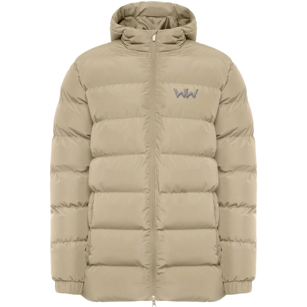 Parka Unisex WARMY con LOGO BORDADO Arena Oscuro, acolchada, capucha fija con visera, cremallera frontal a tono con doble tirador y protector de barbilla, pu帽os el谩sticos, dos bolsillos laterales con cremallera, bolsillo interior pecho izquierdo, acceso interior para reprocesos.