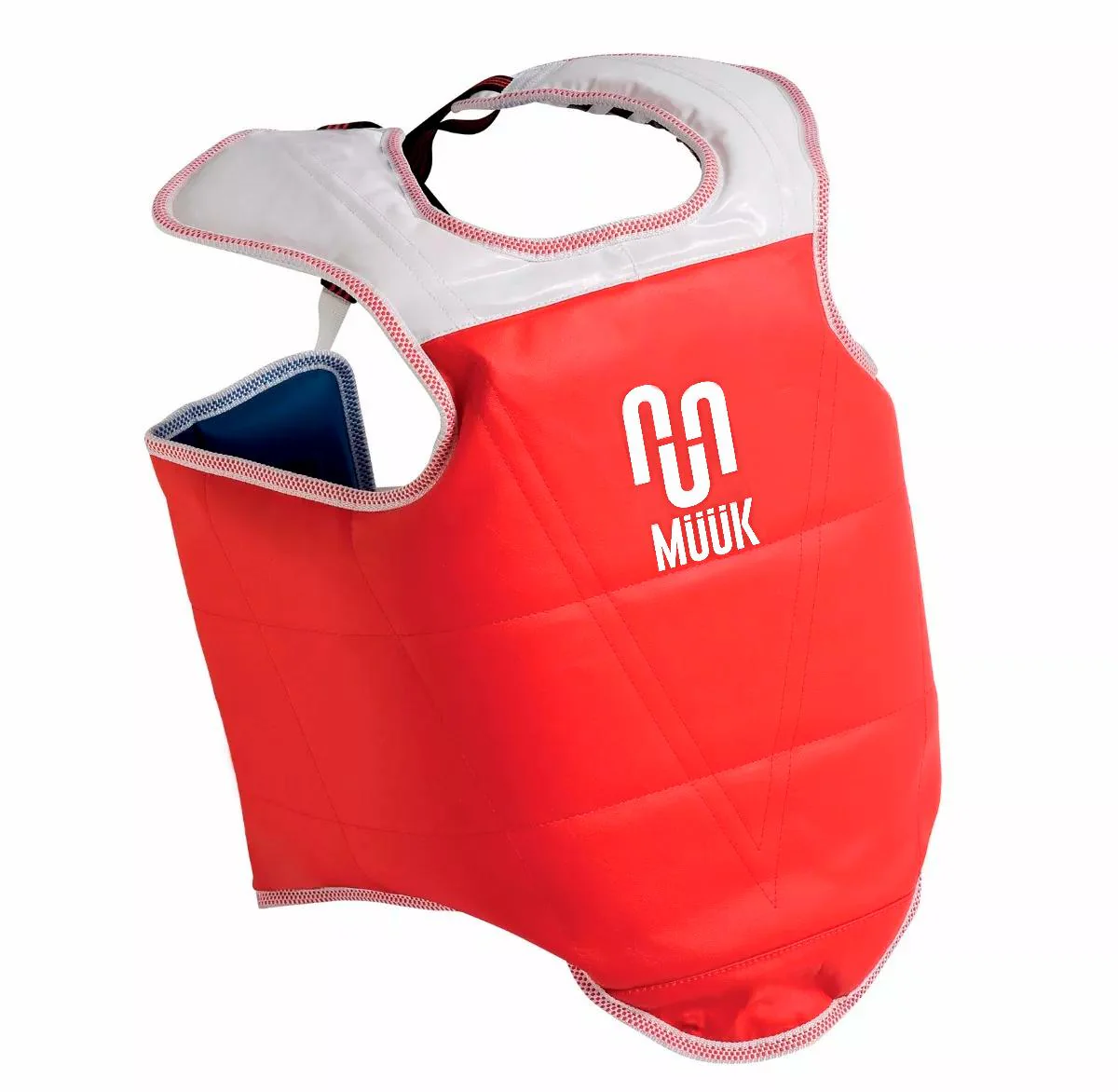 La Pechera de Artes Marciales Muuk reversible está diseñada para entrenamientos de taekwondo y competiciones de artes marciales. Su diseño envolvente ofrece protección para el pecho y laterales del torso, además de la espalda. Cuenta con unas correas en la parte trasera las cuales permiten una mejor fijación y ajuste al cuerpo.