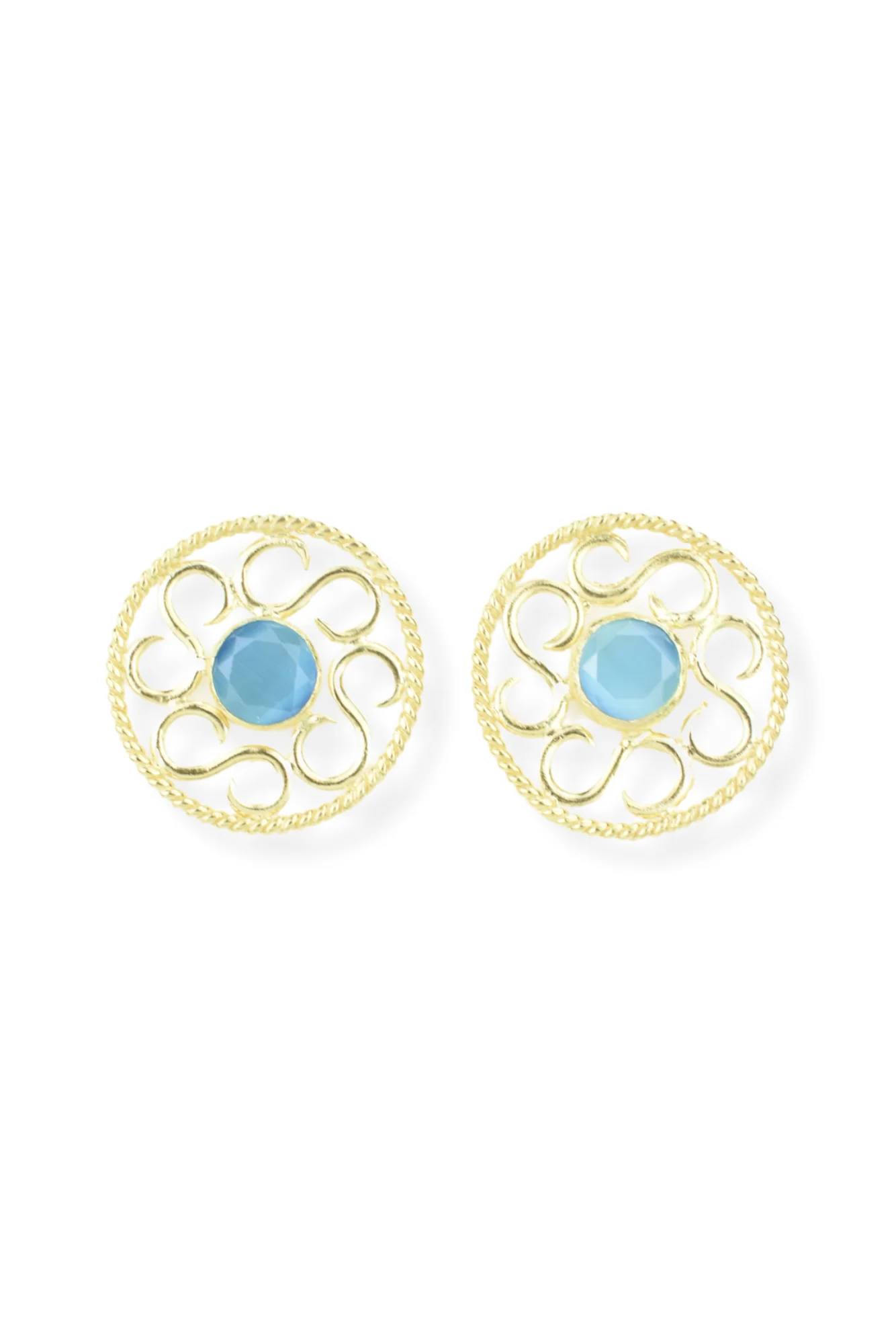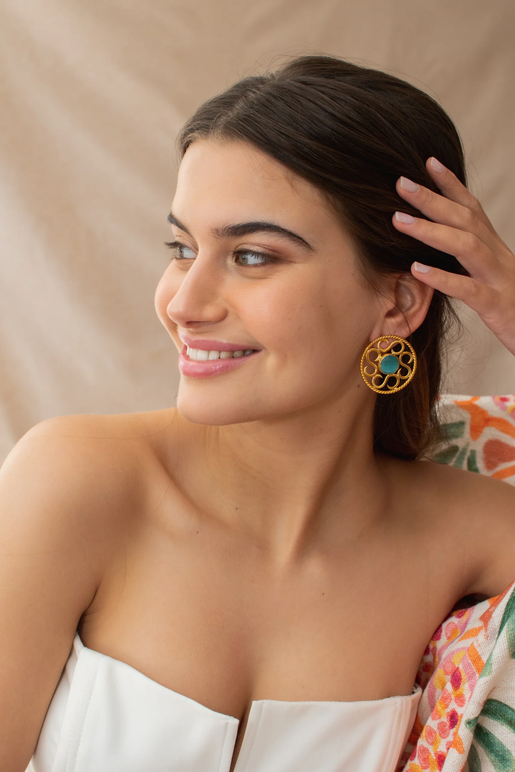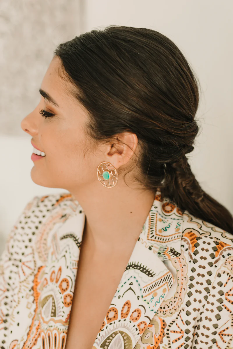 Pendiente hecho a mano en bronce chapado con un baño en oro de 24k.