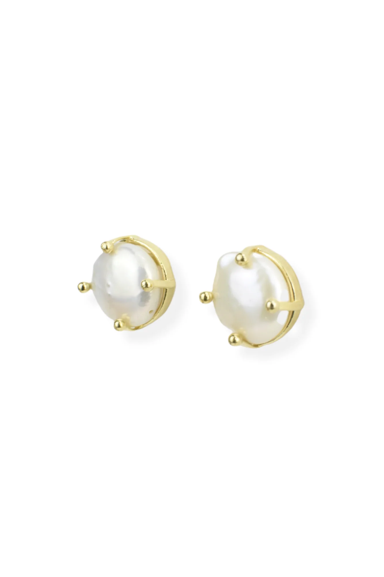Pendientes hecho a mano con bronce chapado y bañados en oro de 24k con piedra en perla.