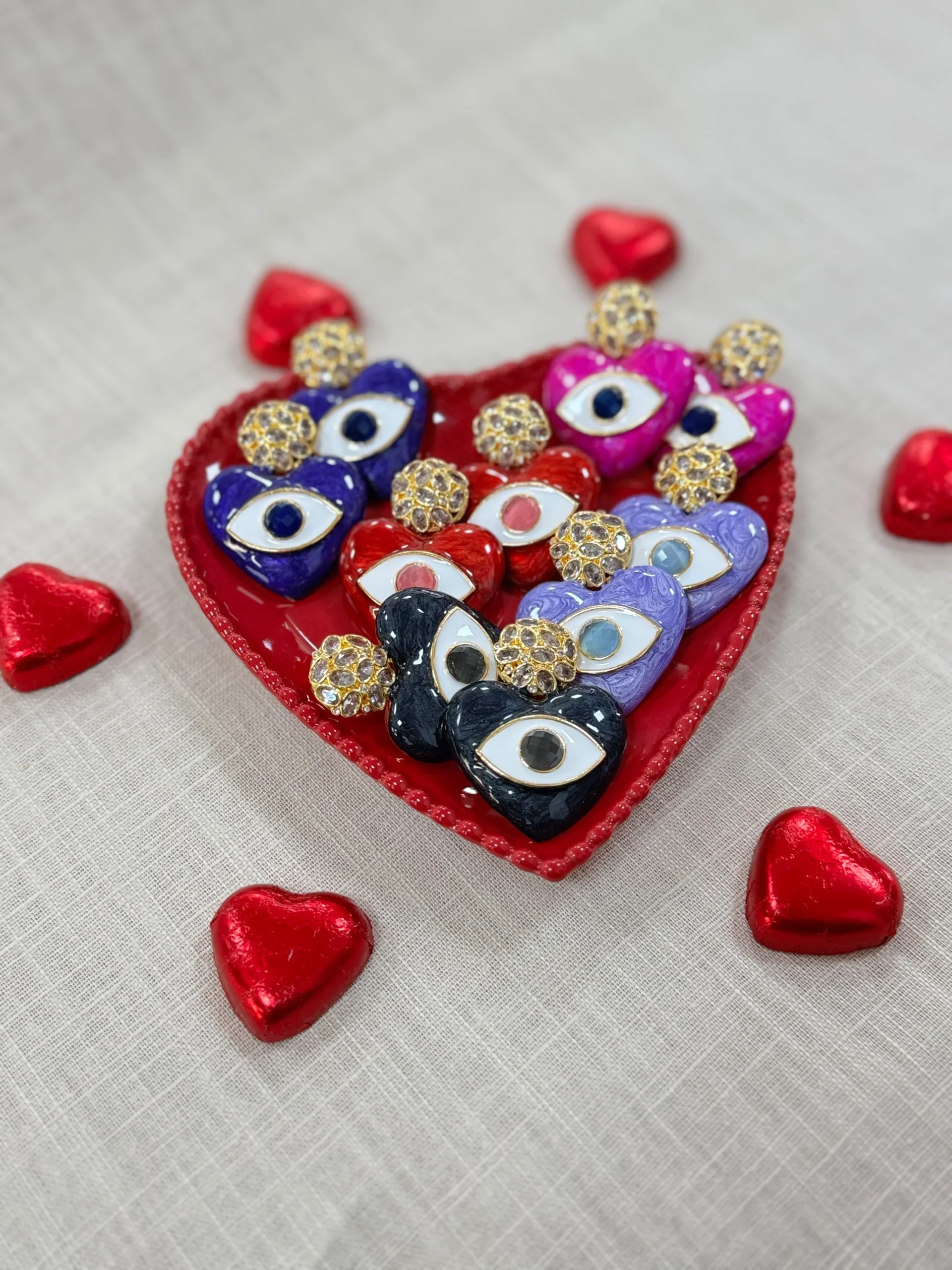 Pendientes artesanales , hechos en bronce con un ba帽o en oro y esmaltados en color. Lleva Cristales y no pesan nada. Broche de palito .