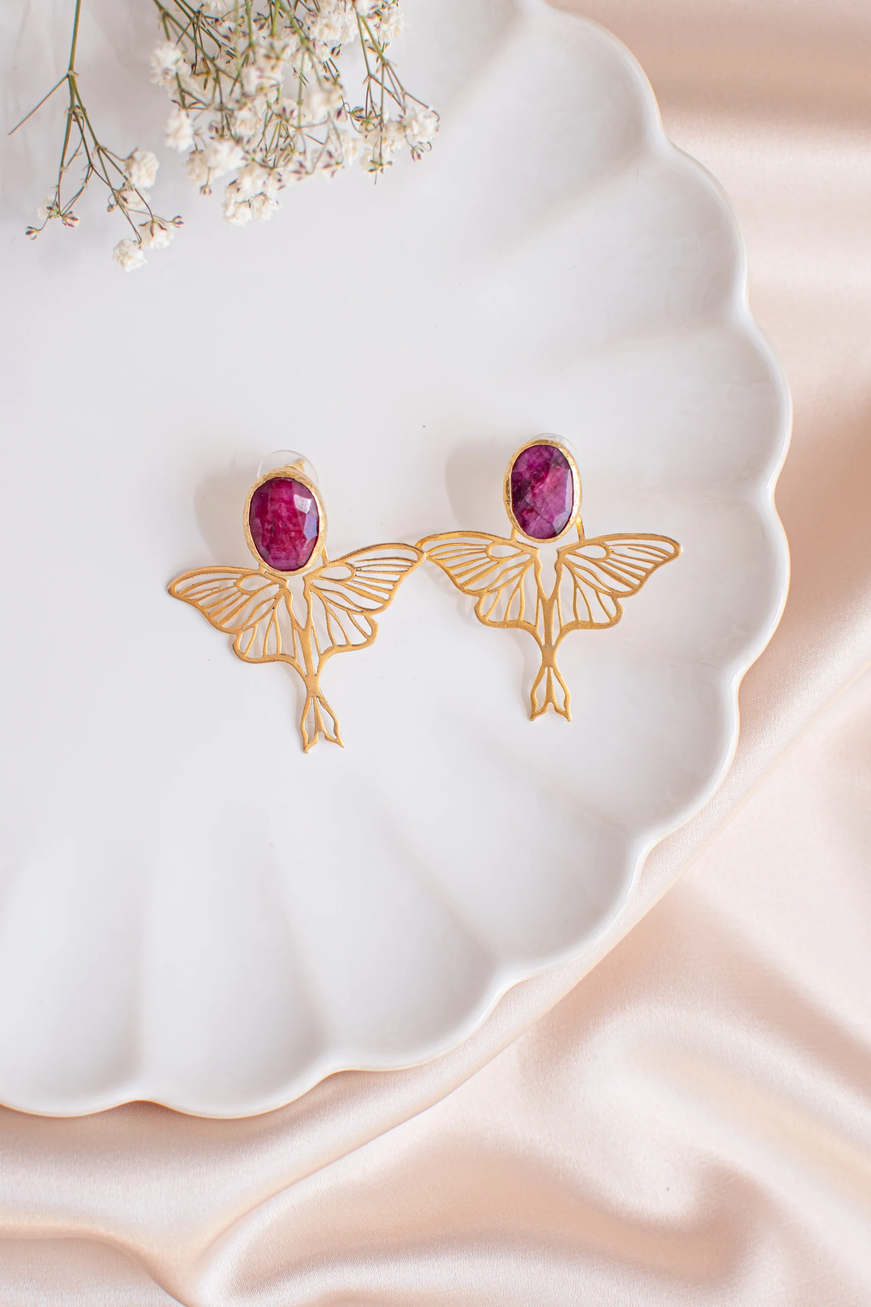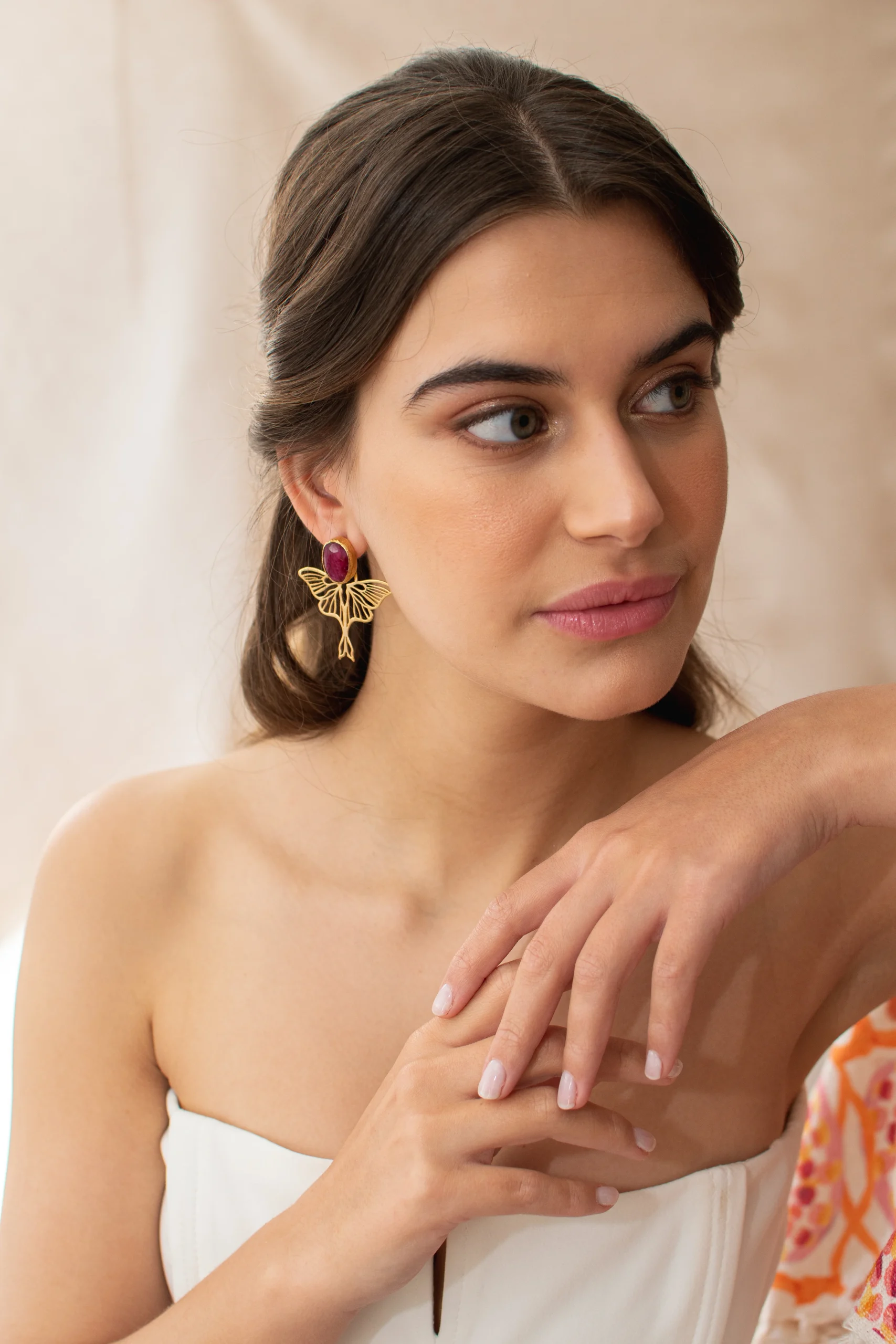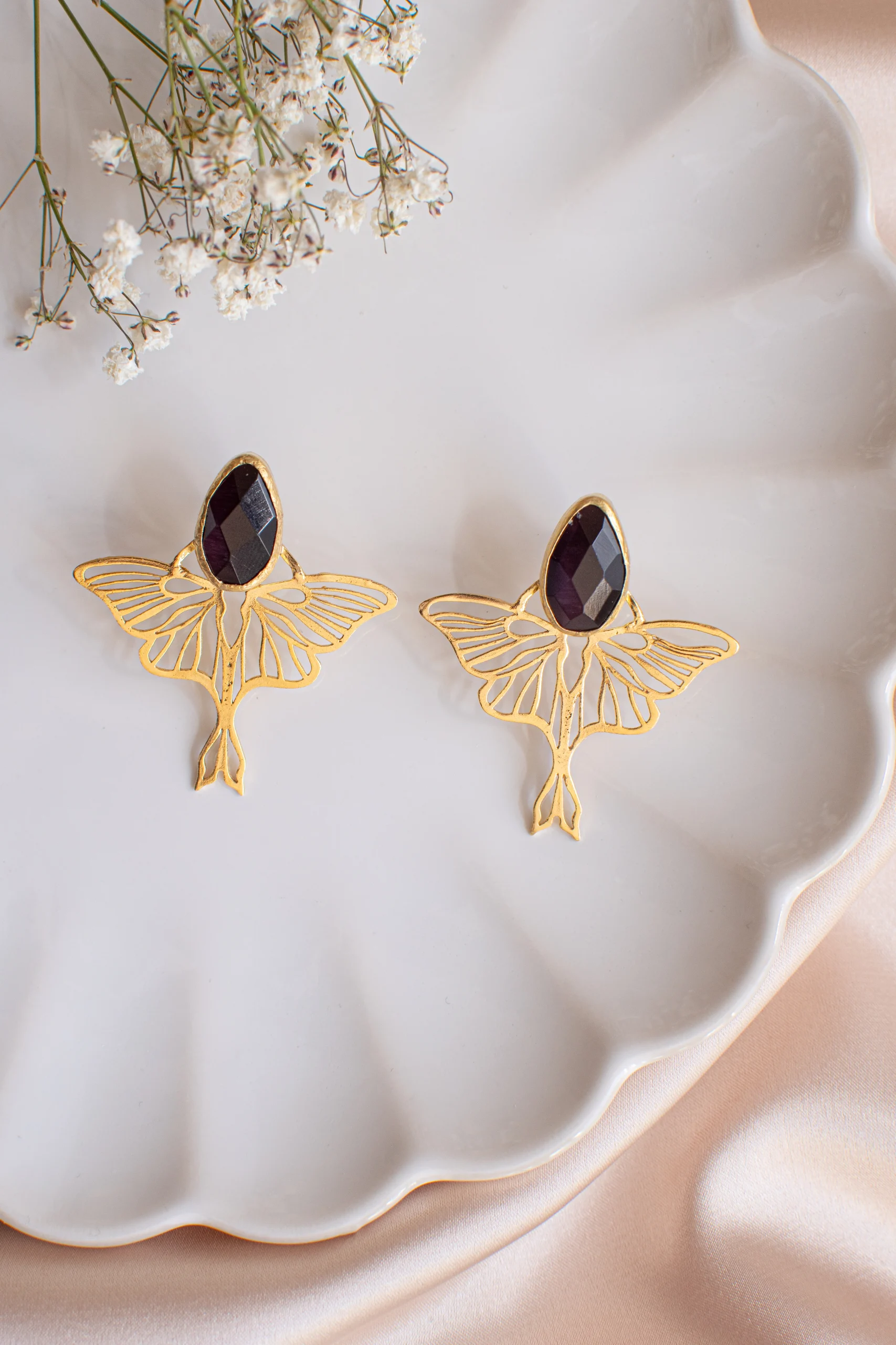 Pendientes hecho a mano en bronce con un ba帽o en oro 24k. Piedra natural. No pesan nada.