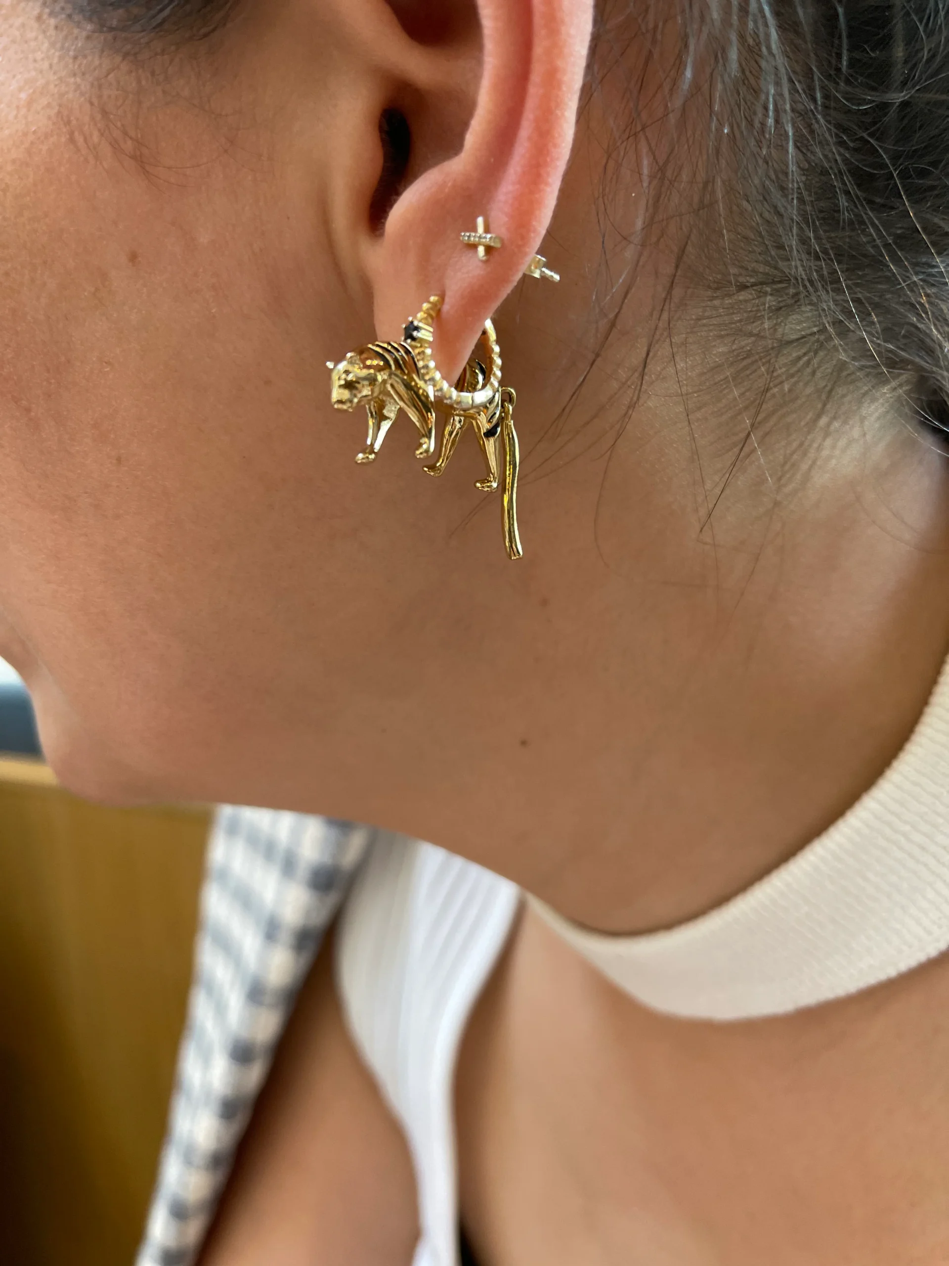 Pendientes en acero con un ba帽o en oro . No pesan y son lo m谩s original que puedas encontrar .
