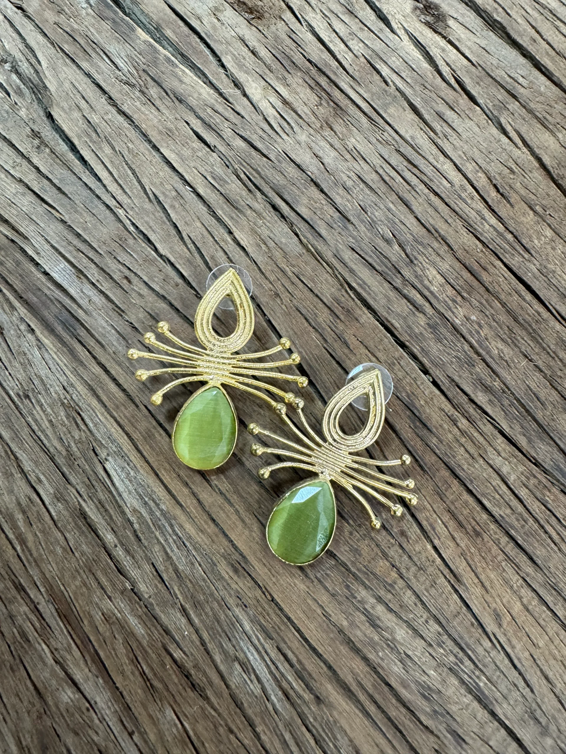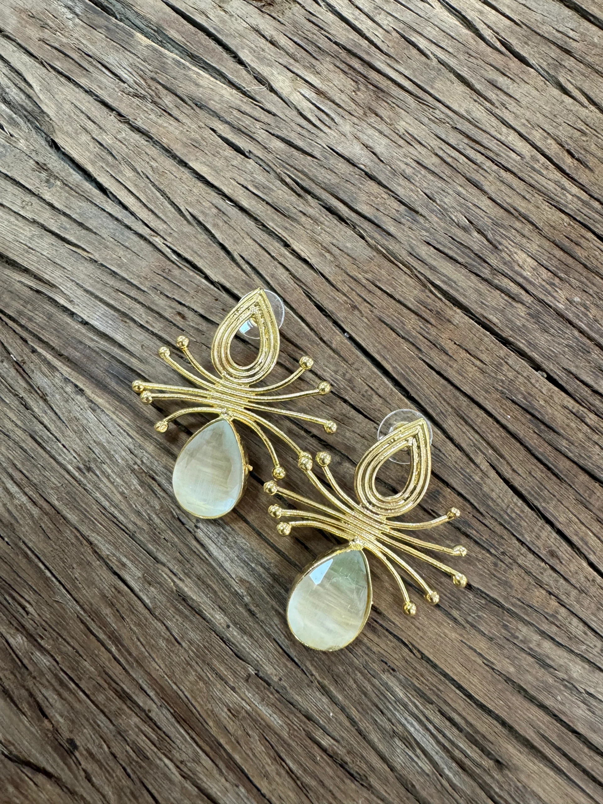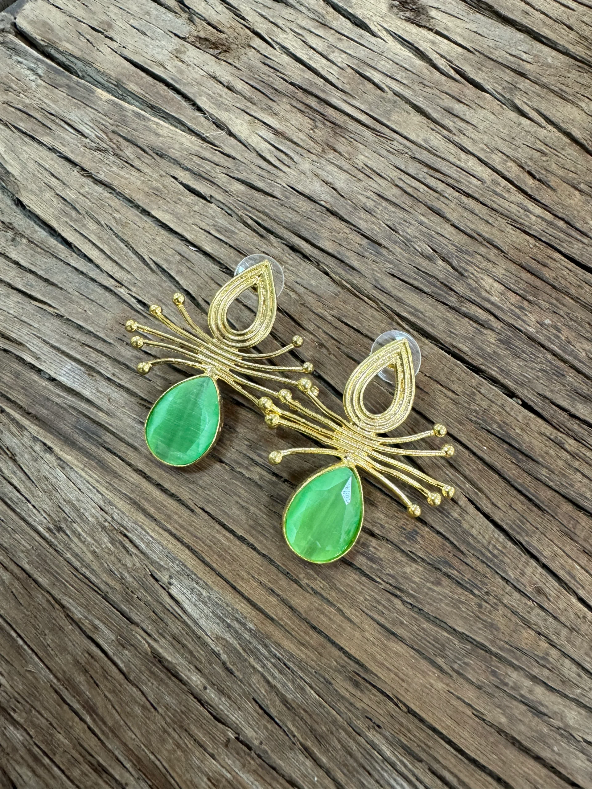 Hecho a mano en bronce laminado con un ba帽o en oro de 24k. No pesan. Llevan piedra natural.