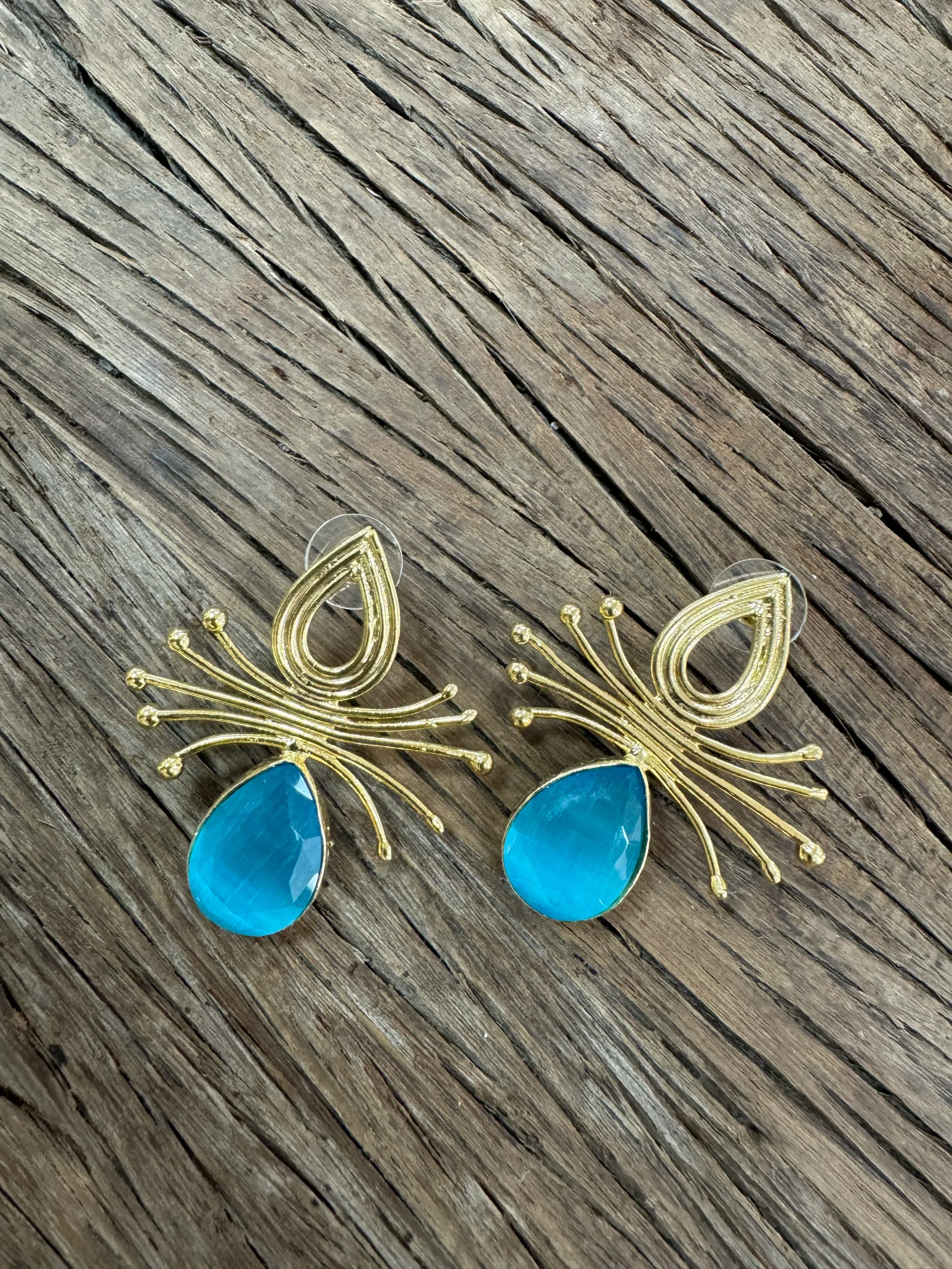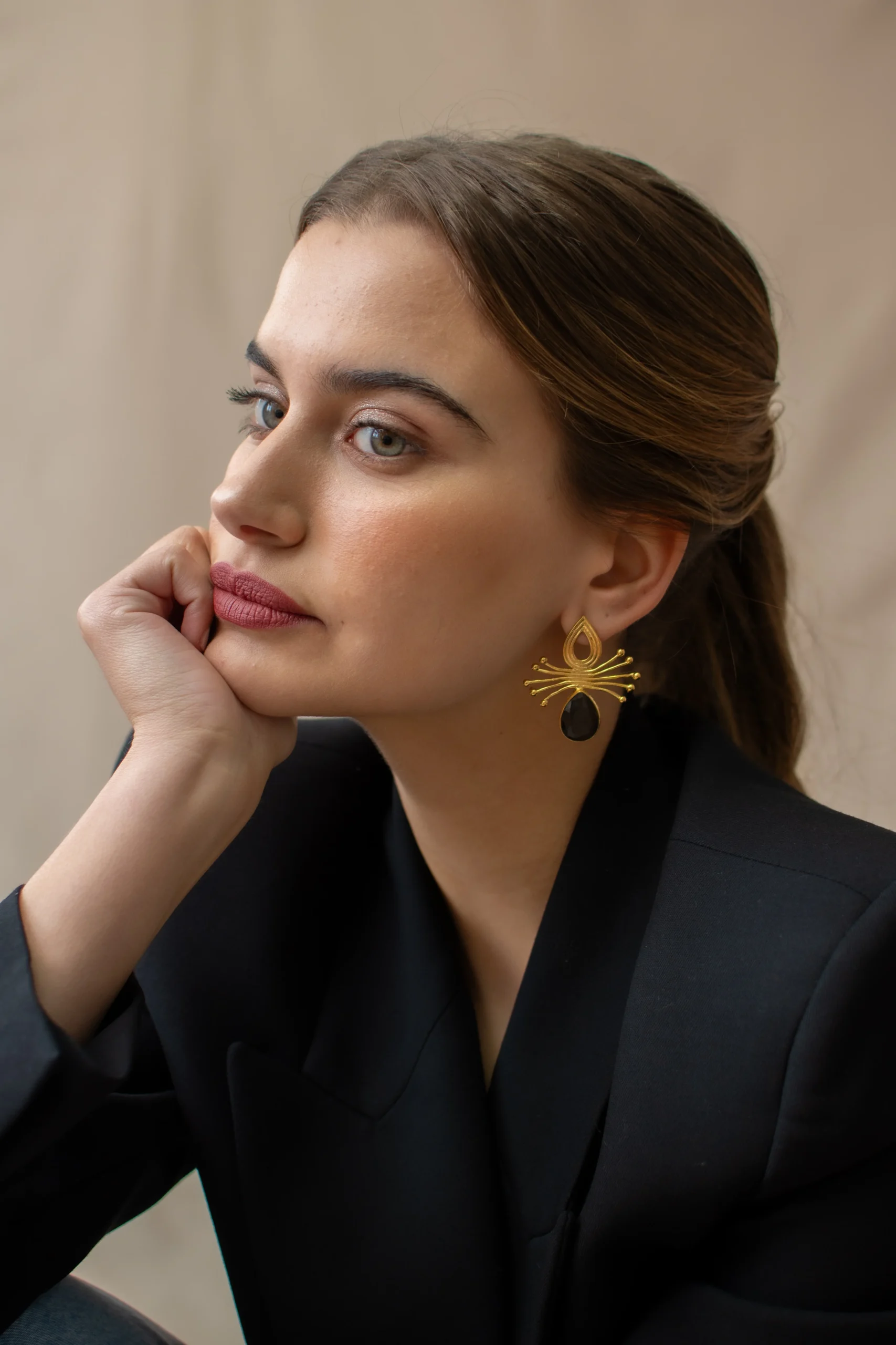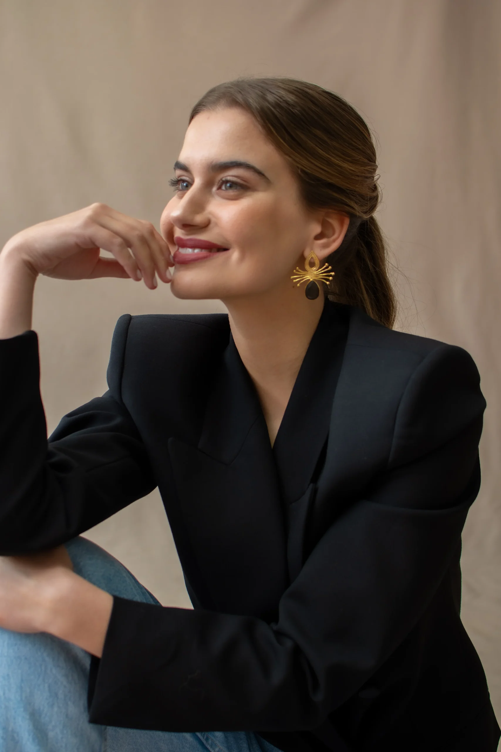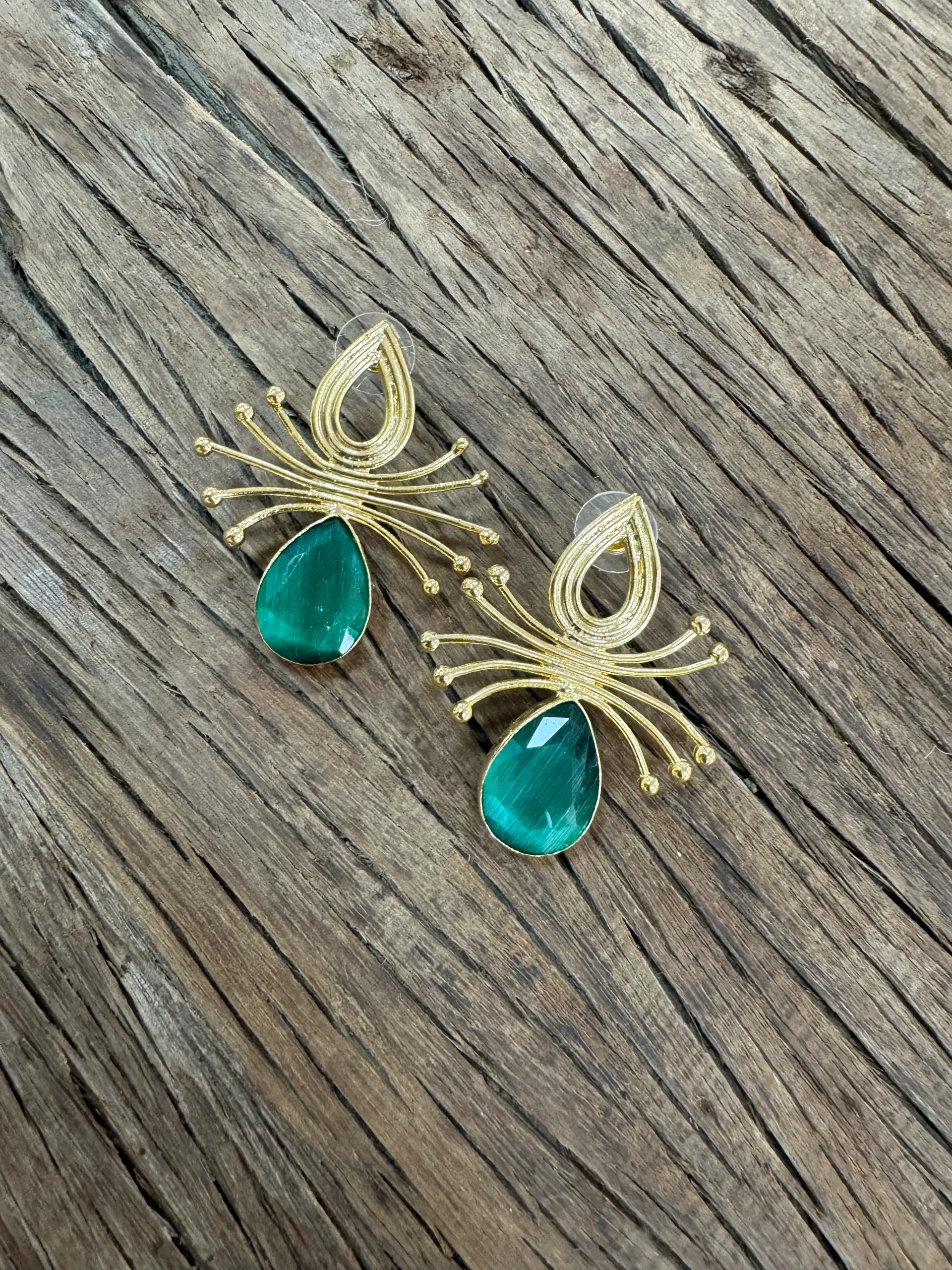 Hecho a mano en bronce laminado con un ba帽o en oro de 24k. No pesan. Llevan piedra natural.