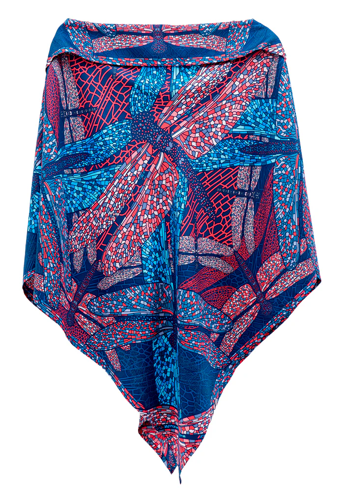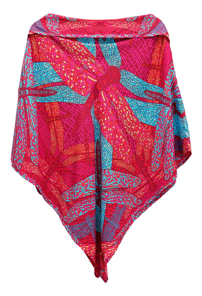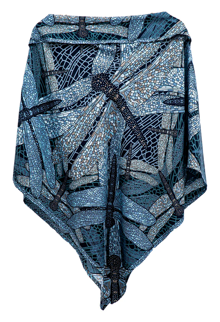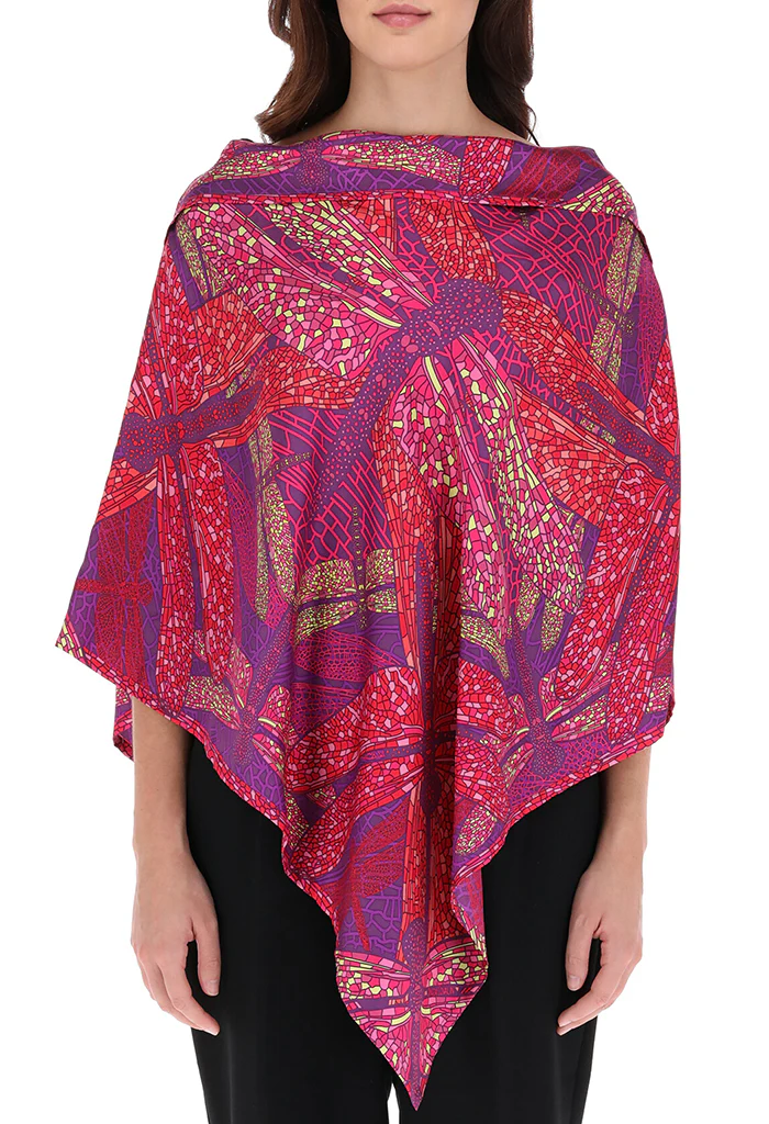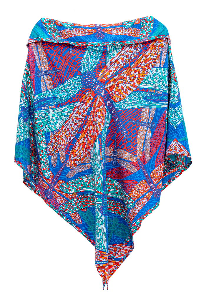 Poncho estampado con escote recto y pliegue en la parte superior que le da un toque elegante y favorecedor. Prenda versátil para todas las tallas.