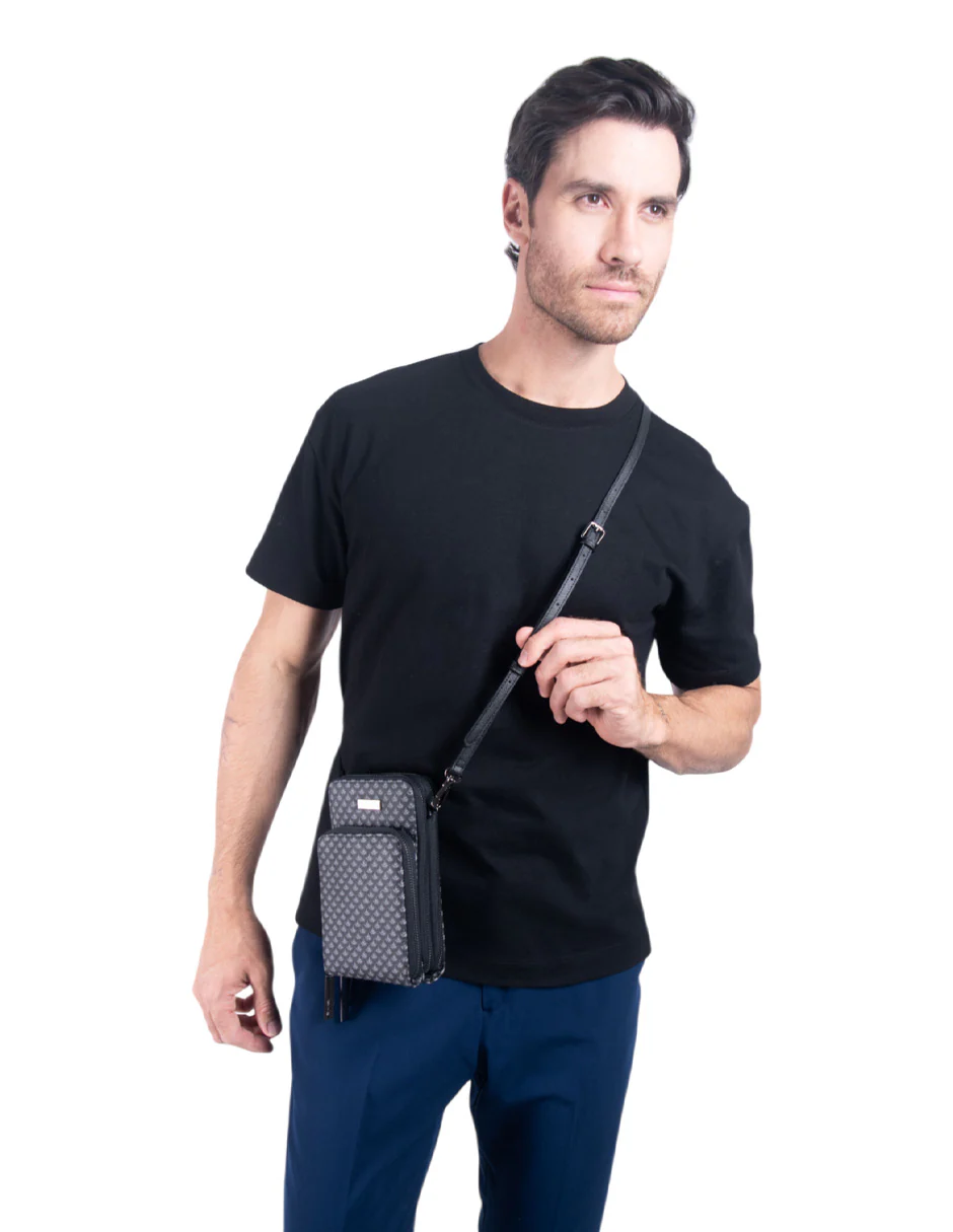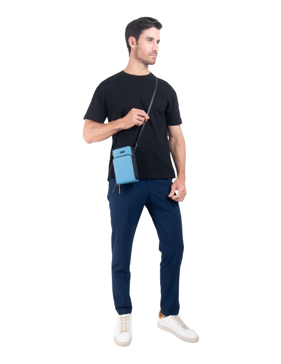 Naab, del maya ‘cuarta’. Bolsa para tel茅fono celular estilo crossbody en acabado saffiano con grabado. Cuenta con correa ajustable y compartimentos con cierre.