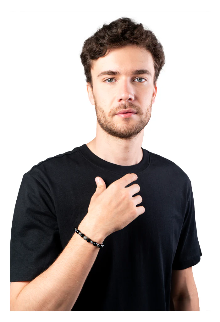 Pulsera Onix para caballero con discos de labradorita negra, hematita y Plata