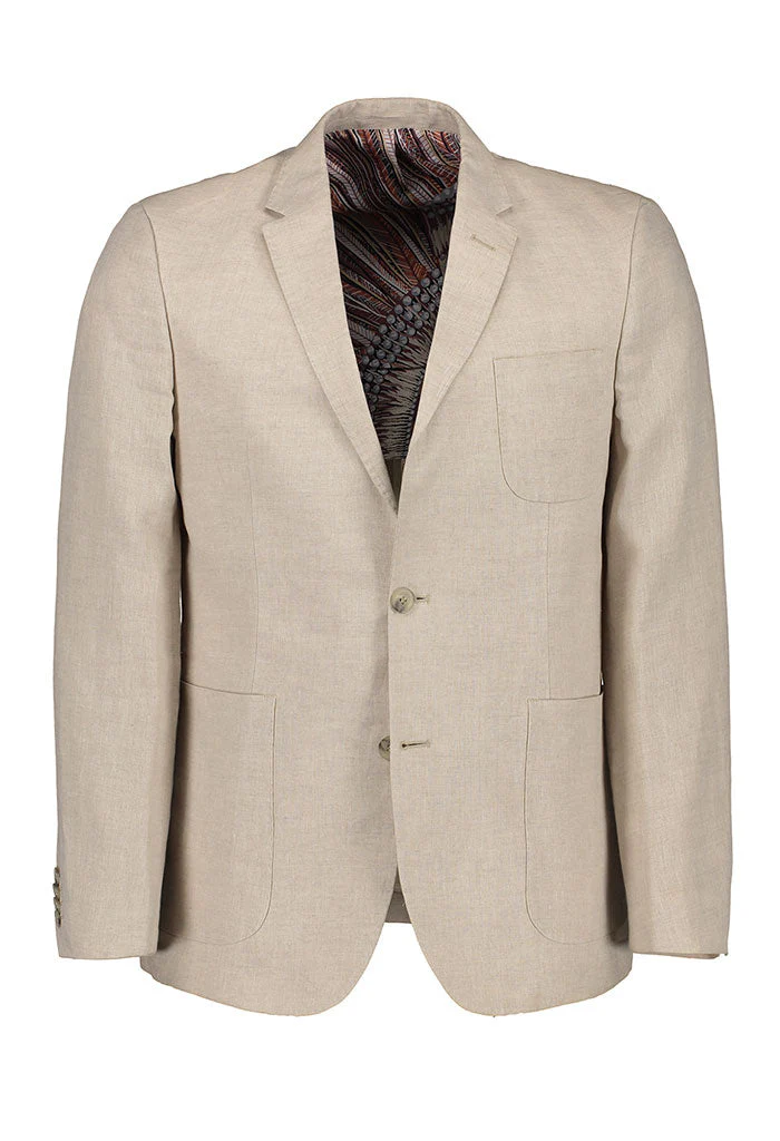 Saco para hombre corte slim con medio forro estampado en contraste. Cierre frontal con botones. Bolsillos de plastr贸n con acabado redondeado.