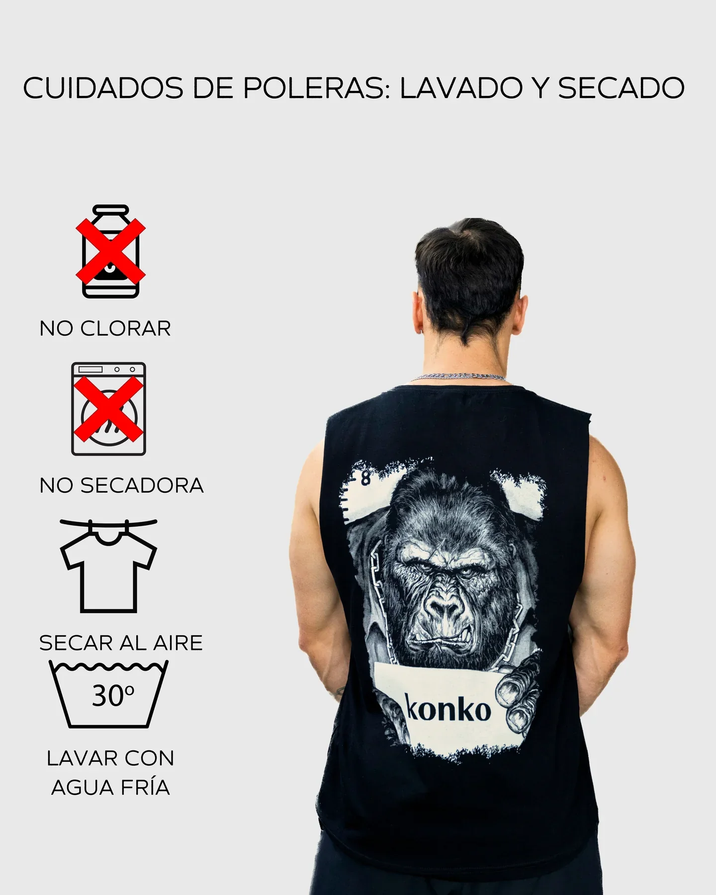 - Tipo de Dise帽o: Sisa Abierta y Sublimado Gorila Konko En La Espalda