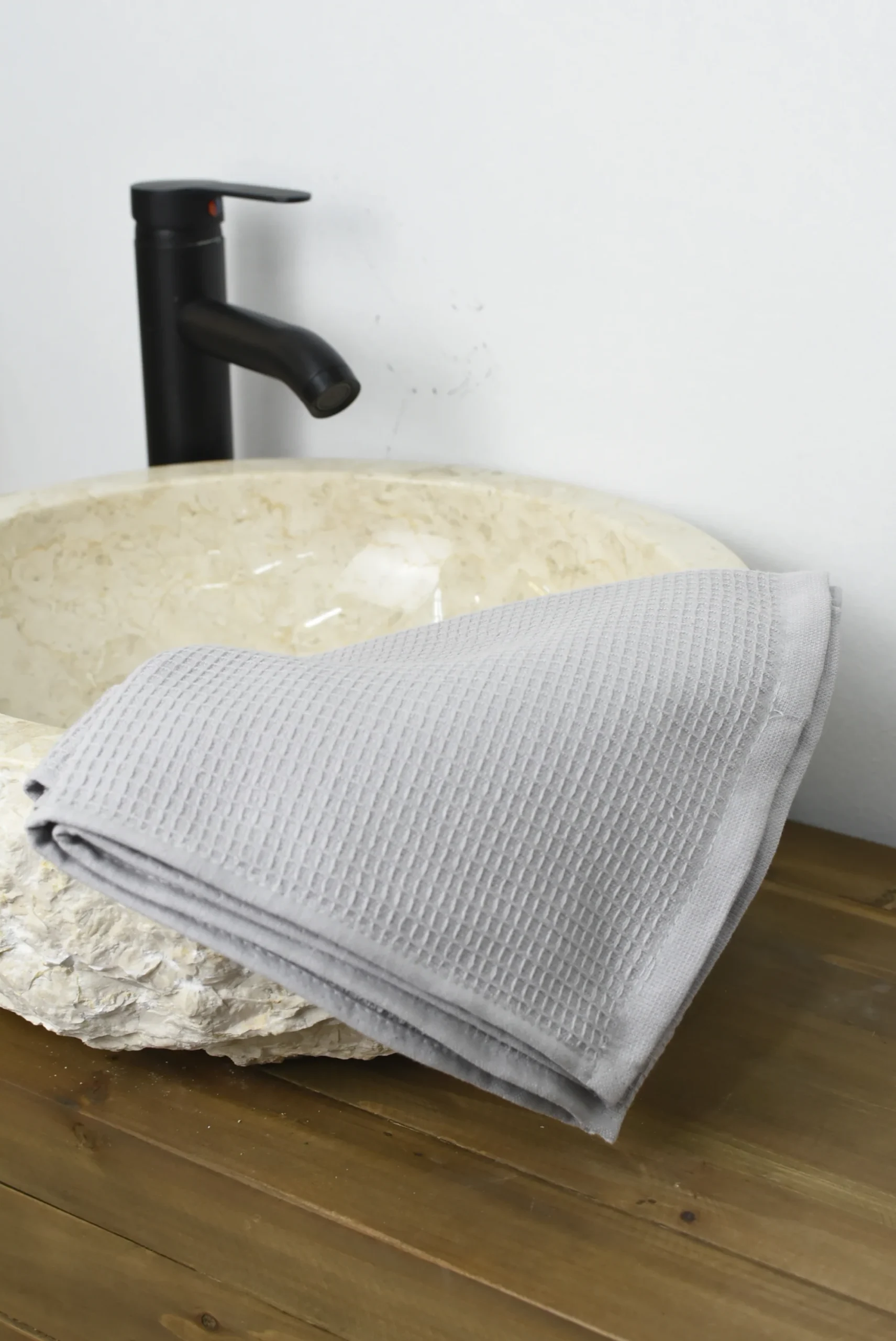 Confeccionado en tejido waffle en su parte exterior y rizo en su parte interior.