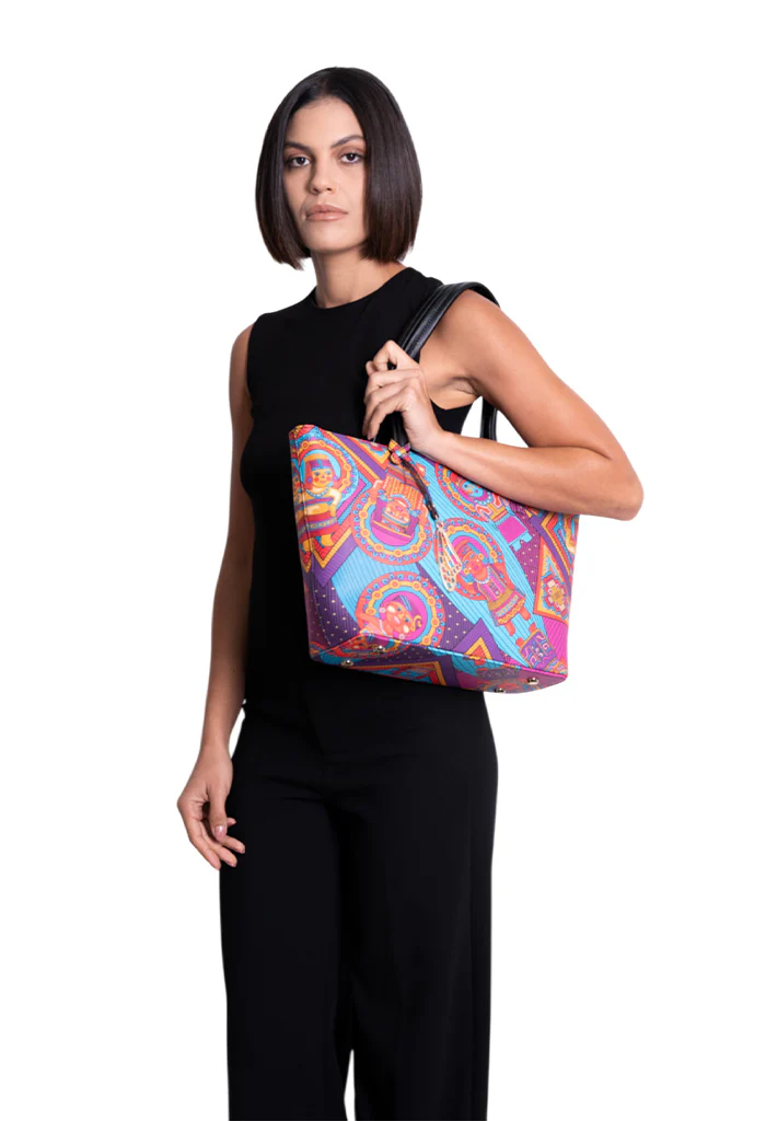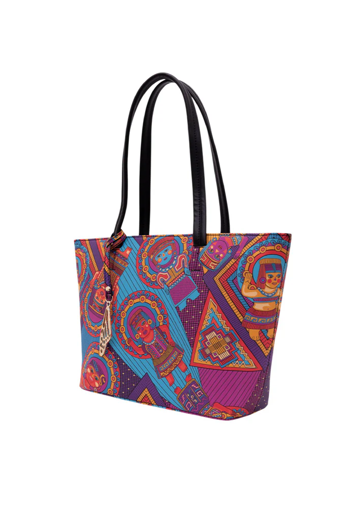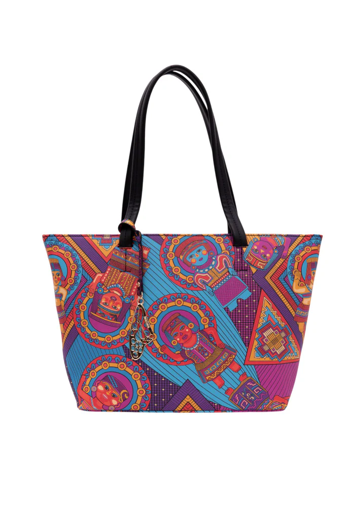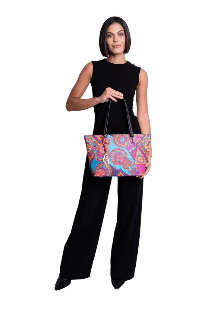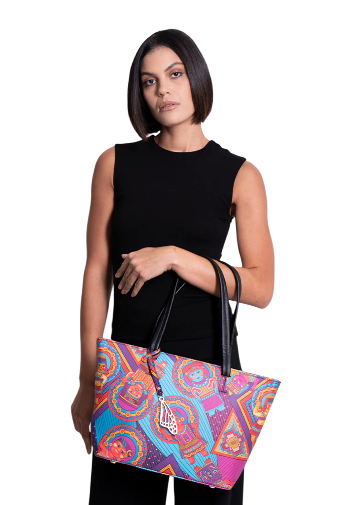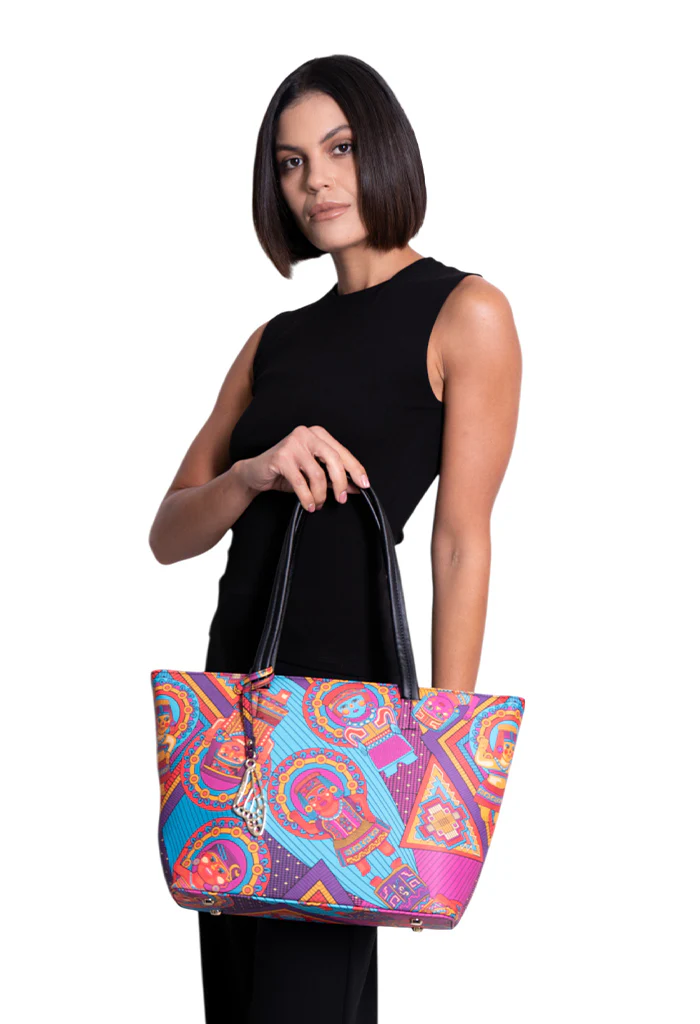 Bolsa tipo tote en acabado estilo saffiano con asa doble. Incluye colgante met谩lico con la forma de un ala de mariposa.