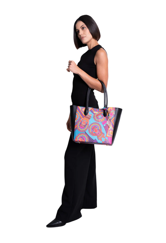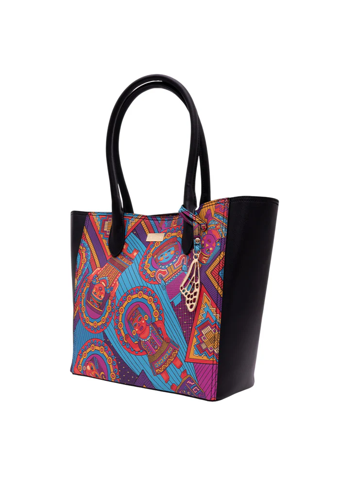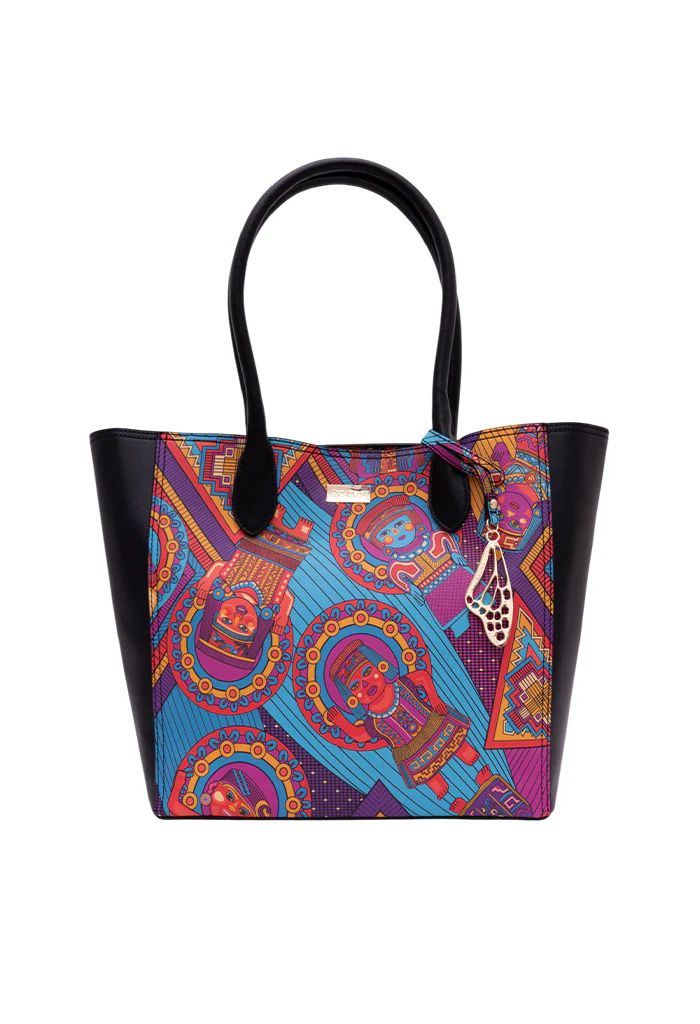 Bolsa tipo tote en acabado estilo saffiano con asa doble. Incluye colgante met谩lico con la forma de un ala de mariposa.