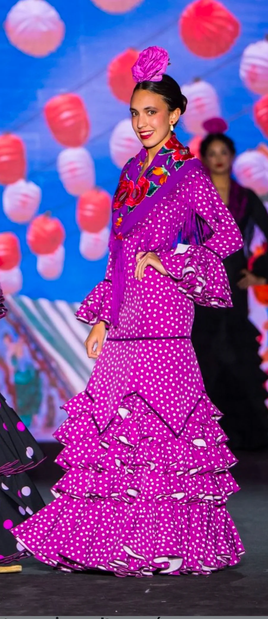 Modelo Lola buganvilla con lunar blanco
