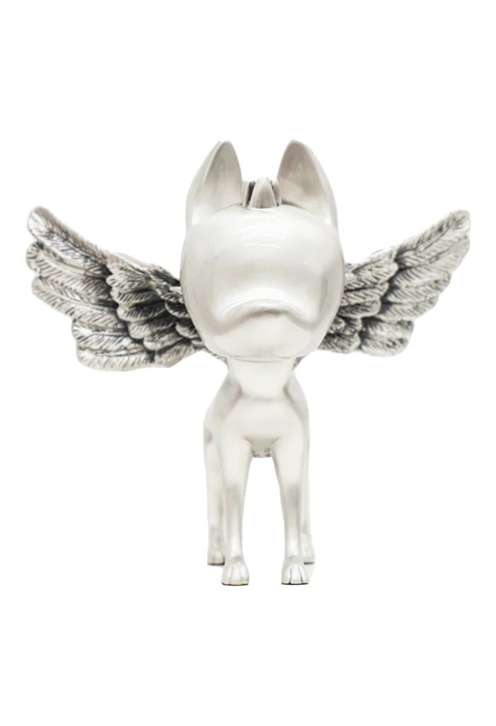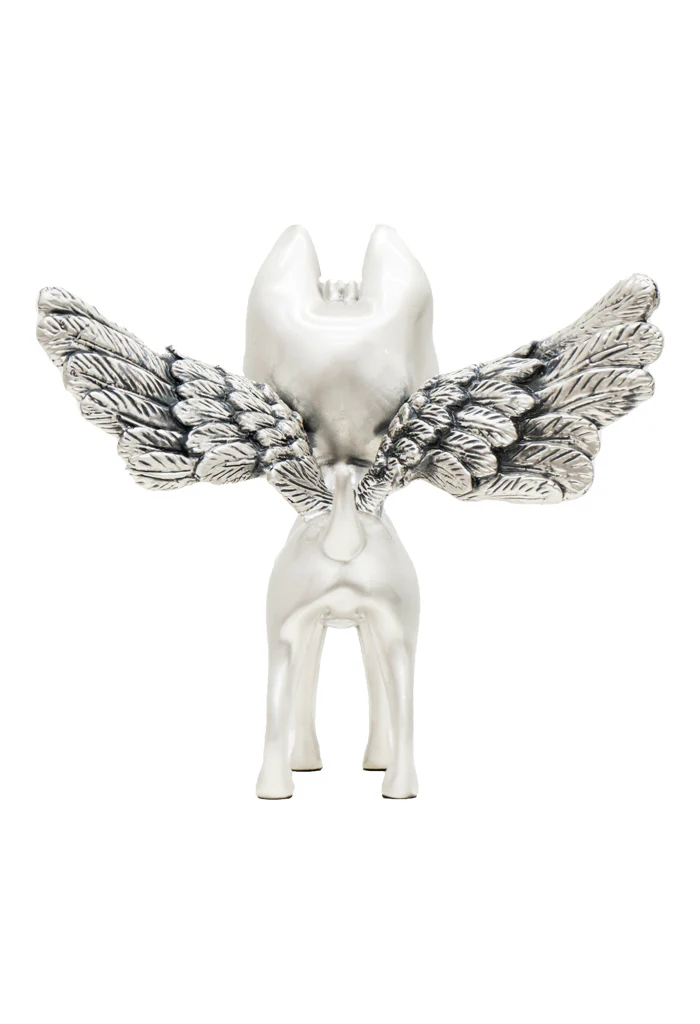 Escultura retocada a mano con acabado en plata mate. Cuenta con laca protectora para evitar la oxidaci贸n.