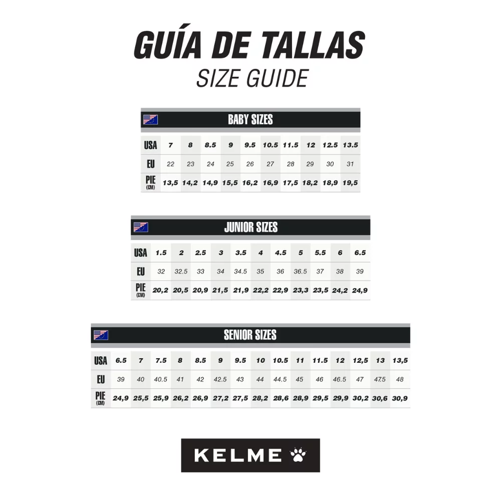 Los zapatos KELME K-FIGHTING están diseñados pensando en tu comodidad. Su suave cuero sintético, materiales resistentes al estiramiento y suela de TPU te dan la mejor movilidad en las canchas de césped artificial.