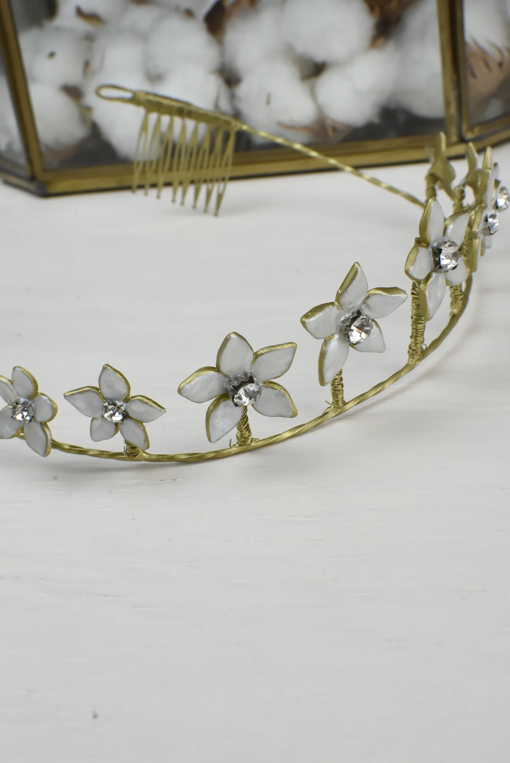 Tiara Flores Blancas Cristal