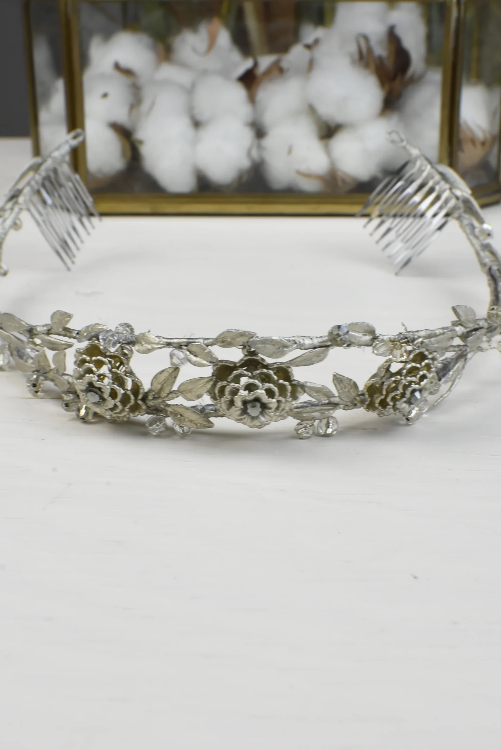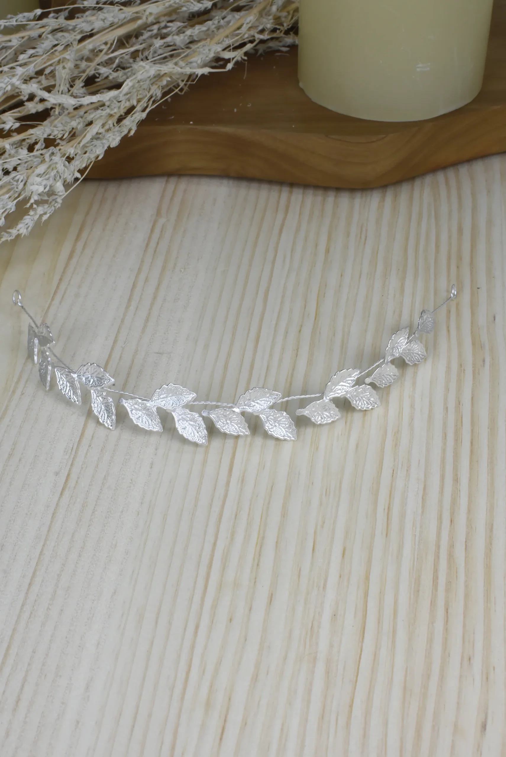Tiara Hojas Plateada Mate