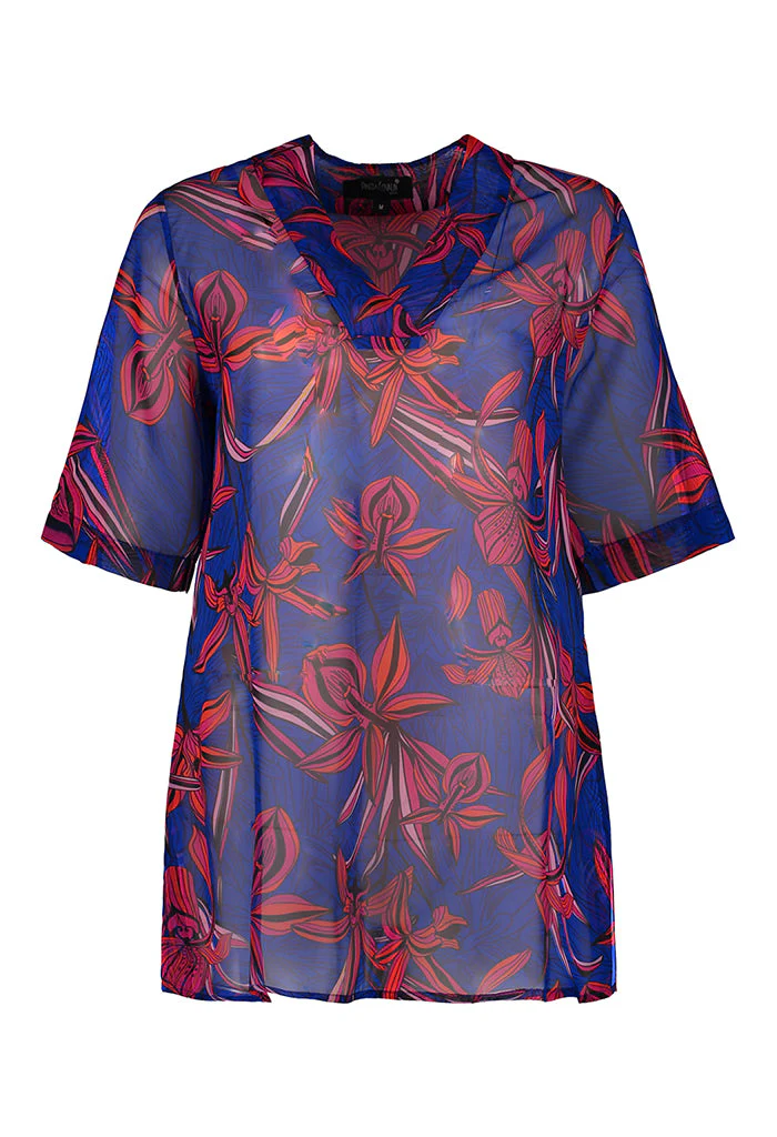 Vestido Soyatl Corto OrquĂdeas Marino